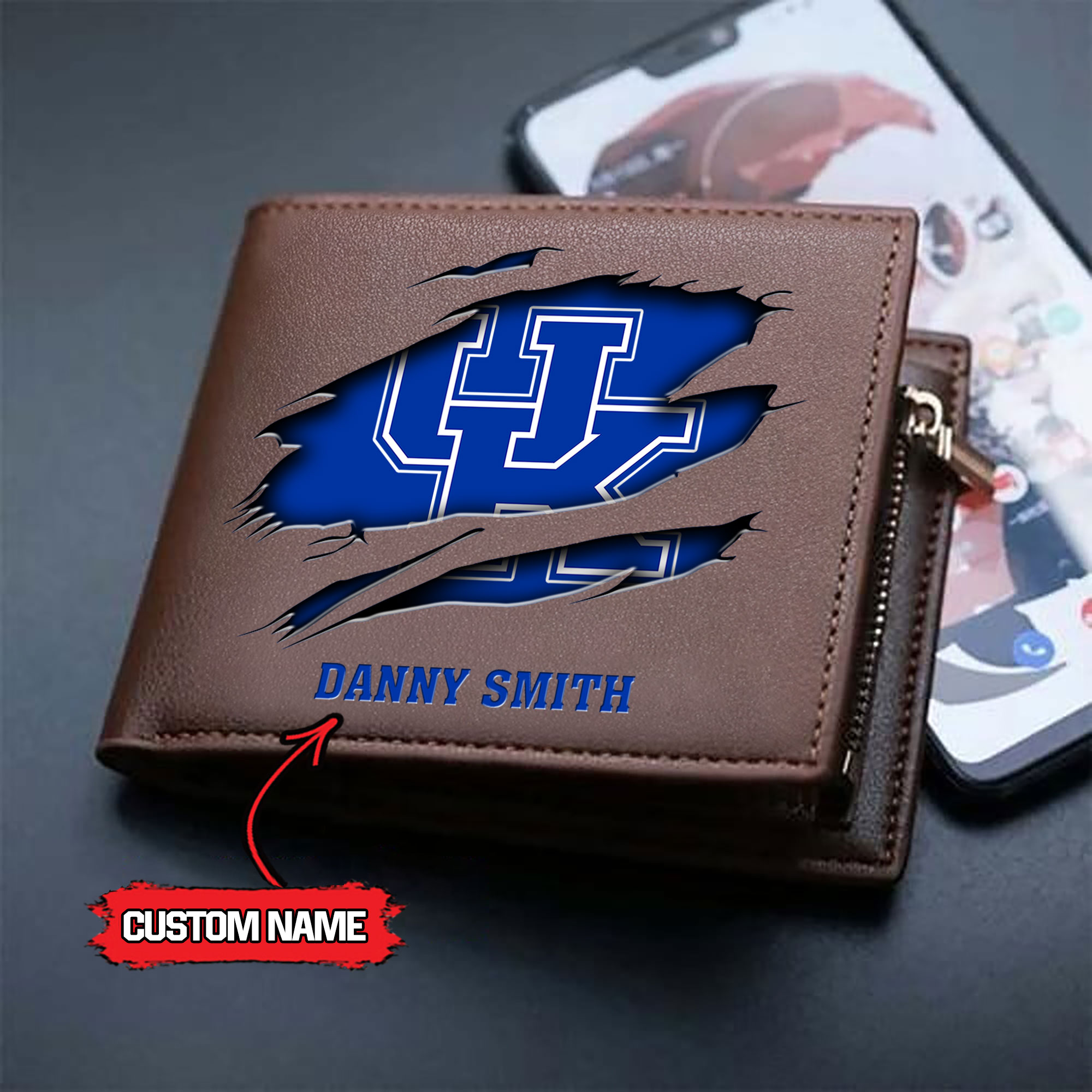 ZNCAA Kentucky Wildcats – Men’s Leather Wallet – Custom Name