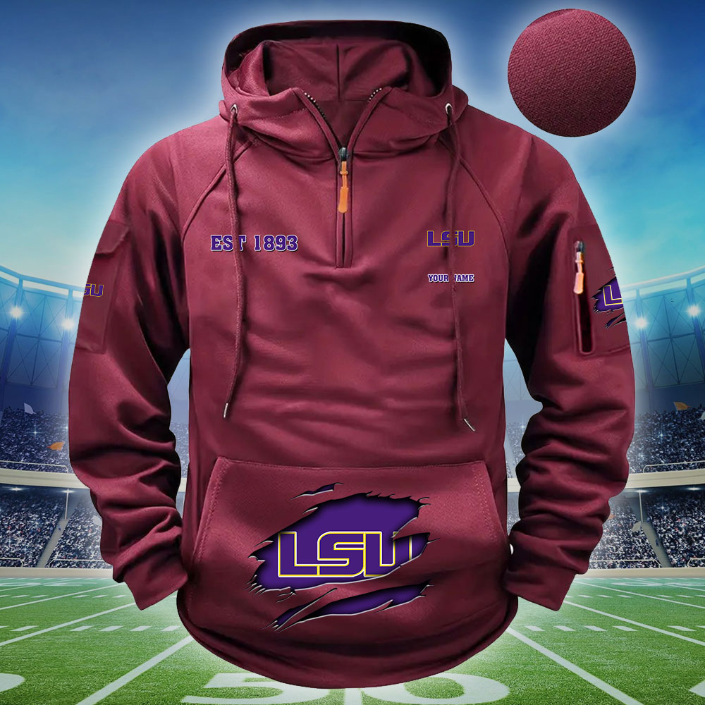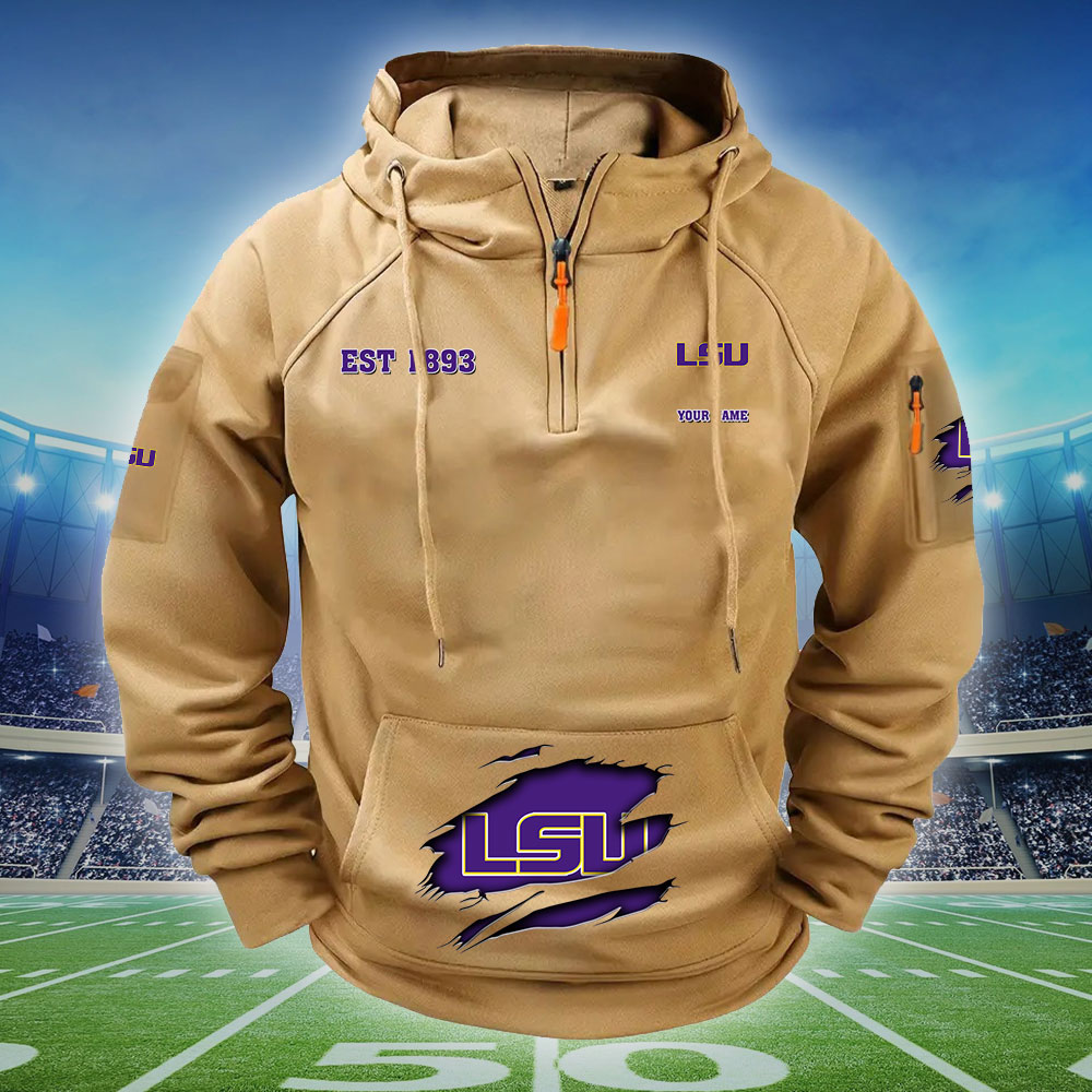 ZNCAA LSU Tigers – Football Men’s Zip-Up Hoodie – Custom Name