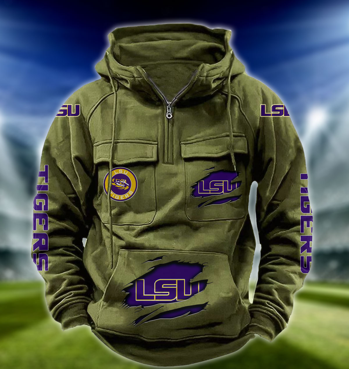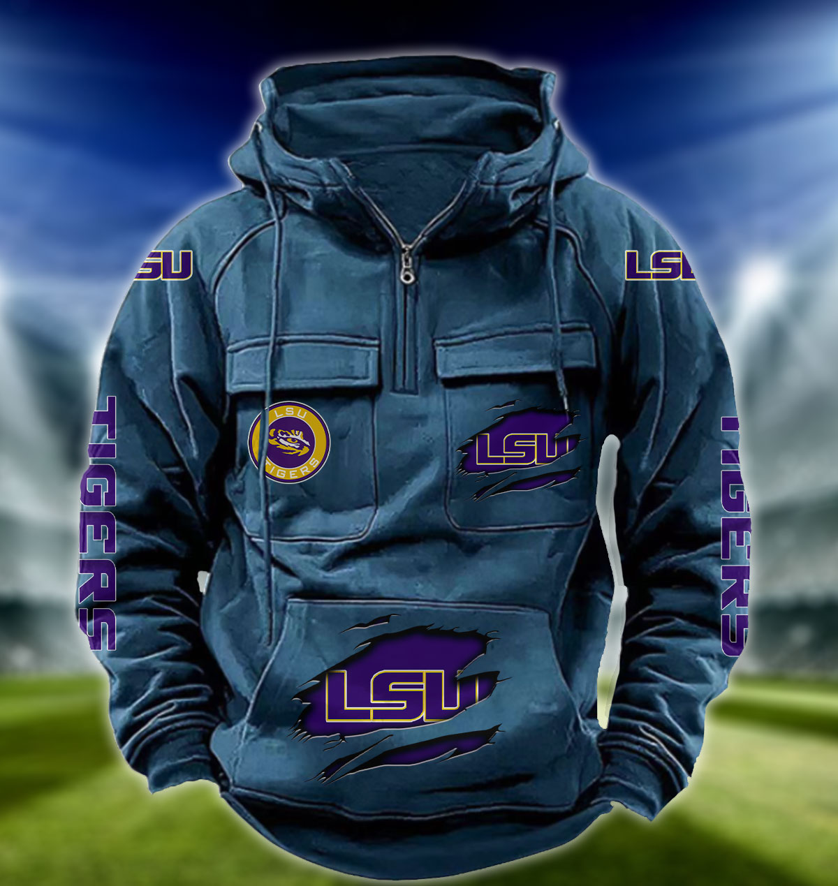 ZNCAA LSU Tigers – Football Men’s Zip-Up Hoodie – Custom Name