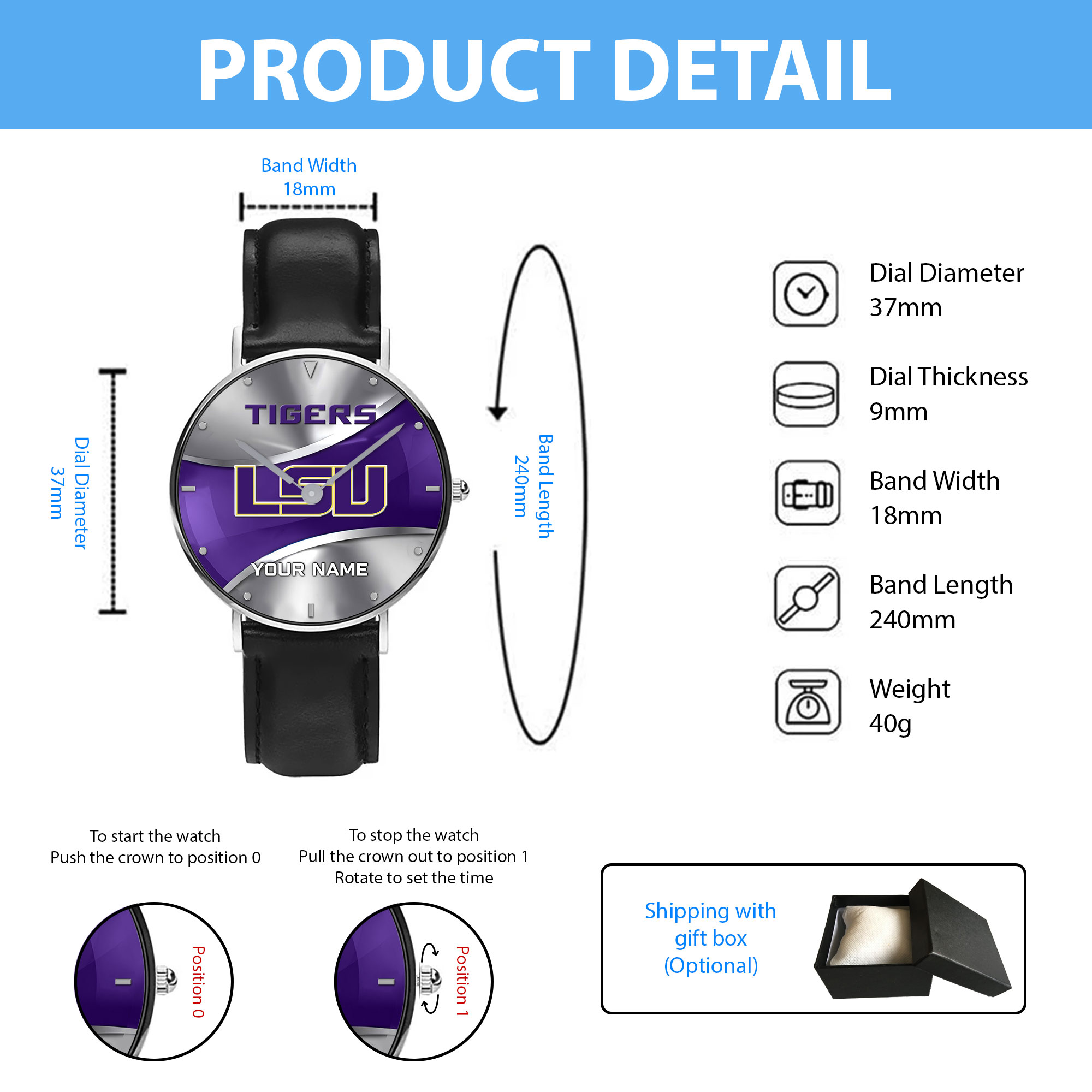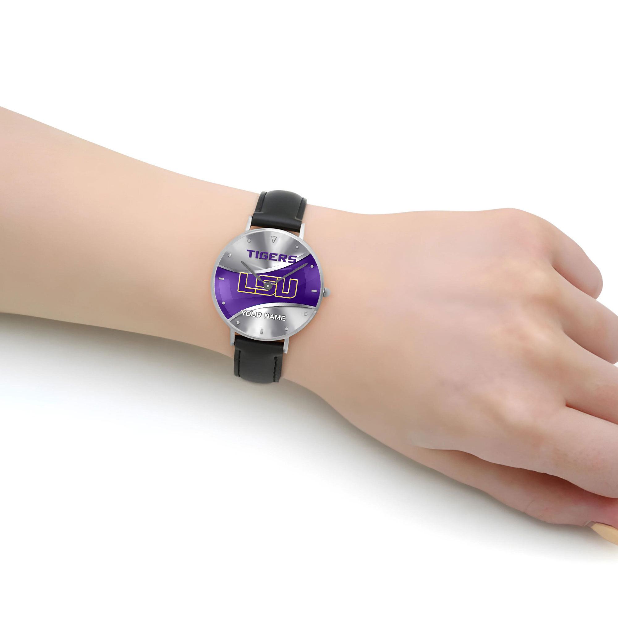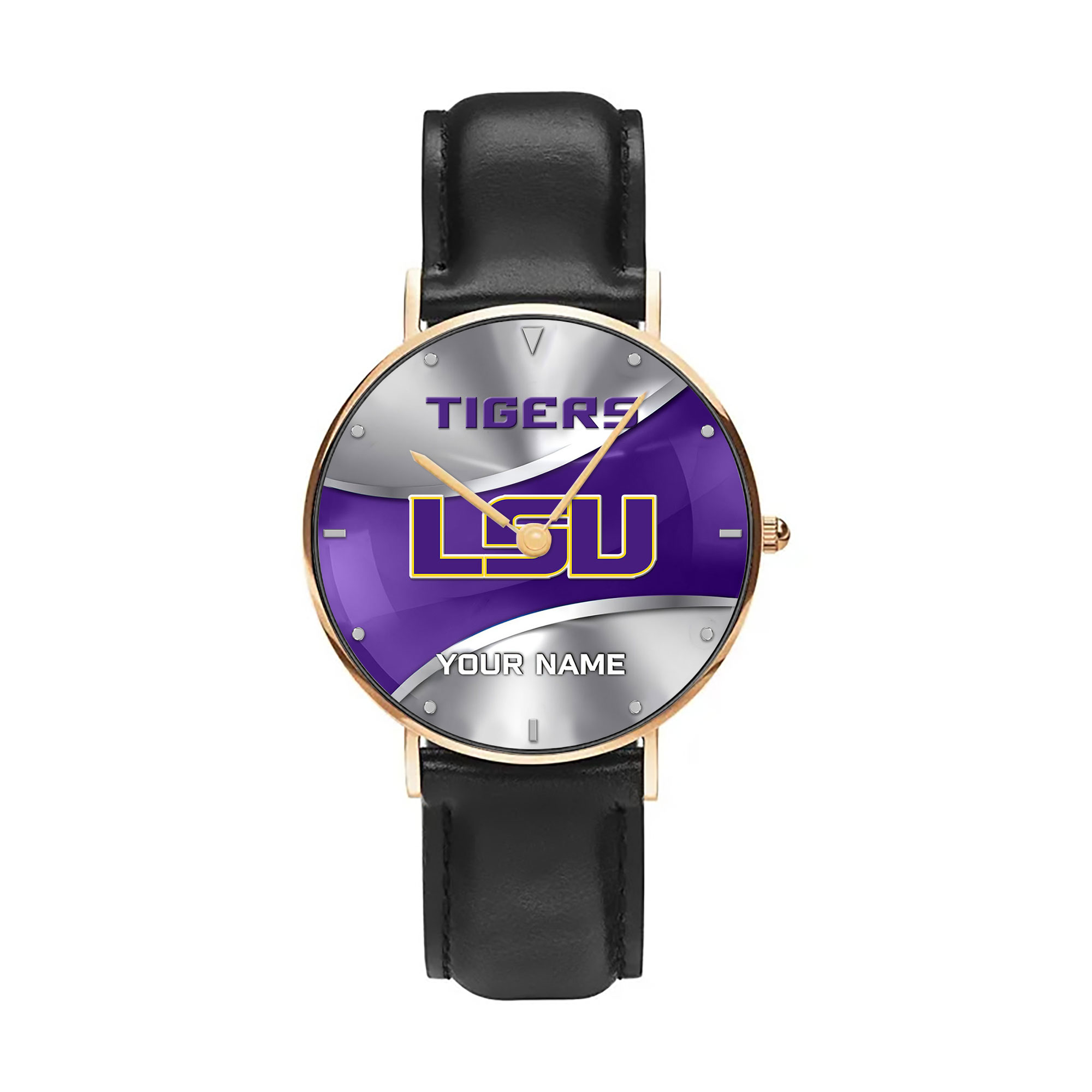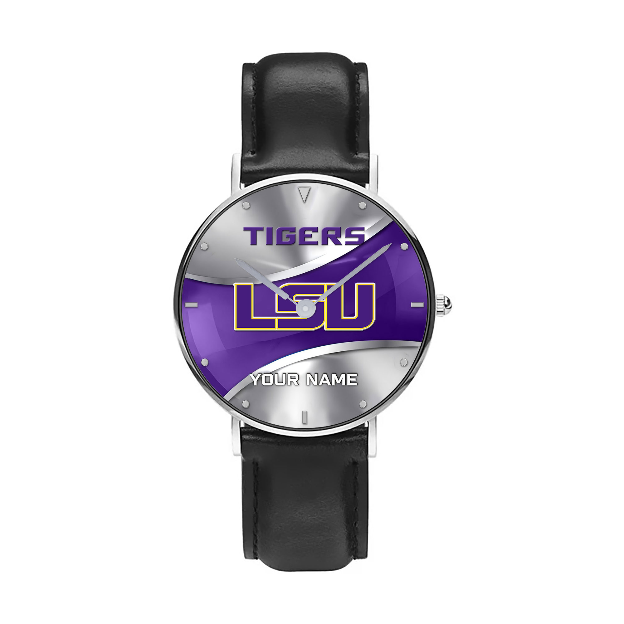 ZNCAA LSU Tigers – Football Black Stitched Leather Watch – Custom Name