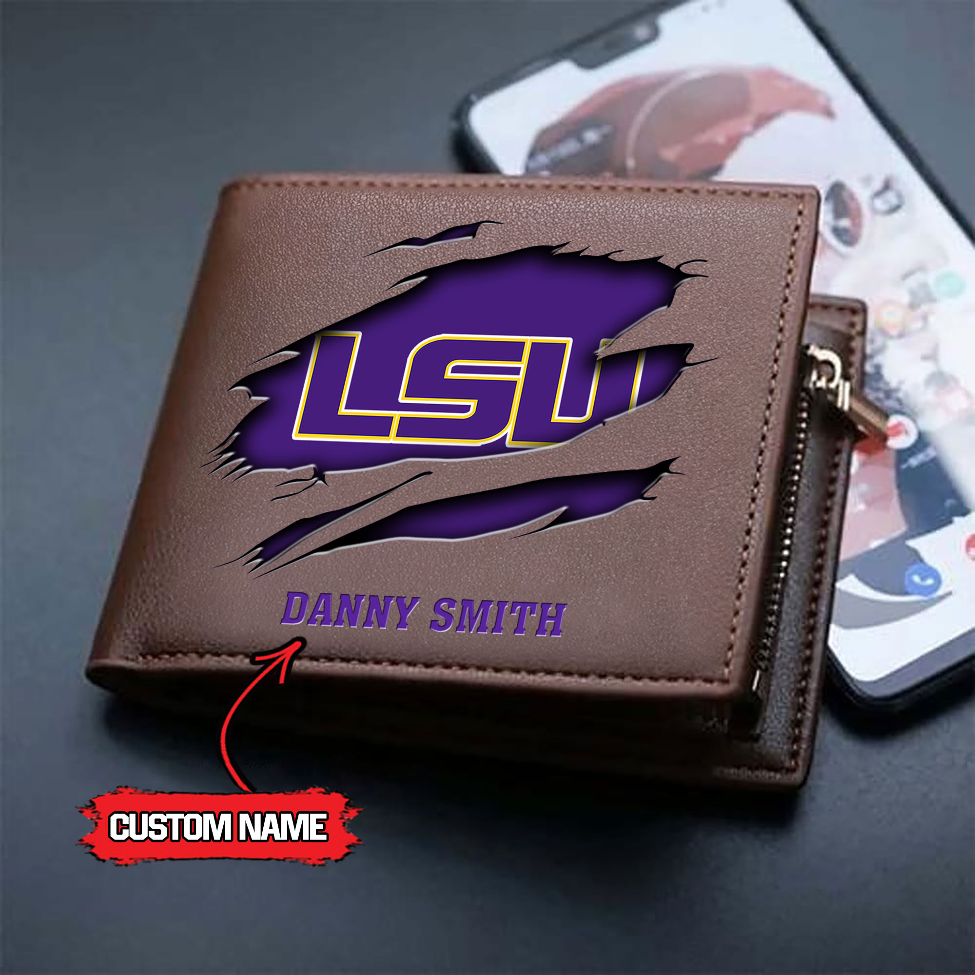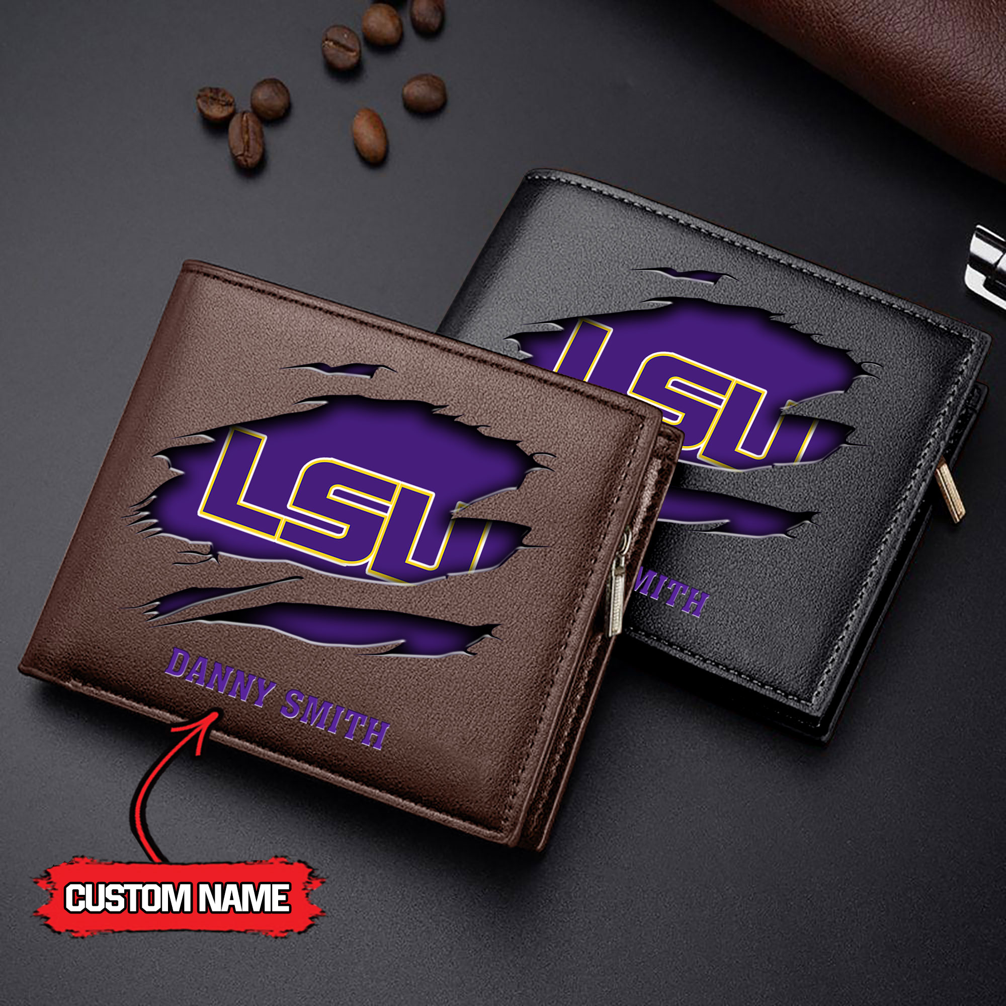 ZNCAA LSU Tigers – Men’s Leather Wallet – Custom Name