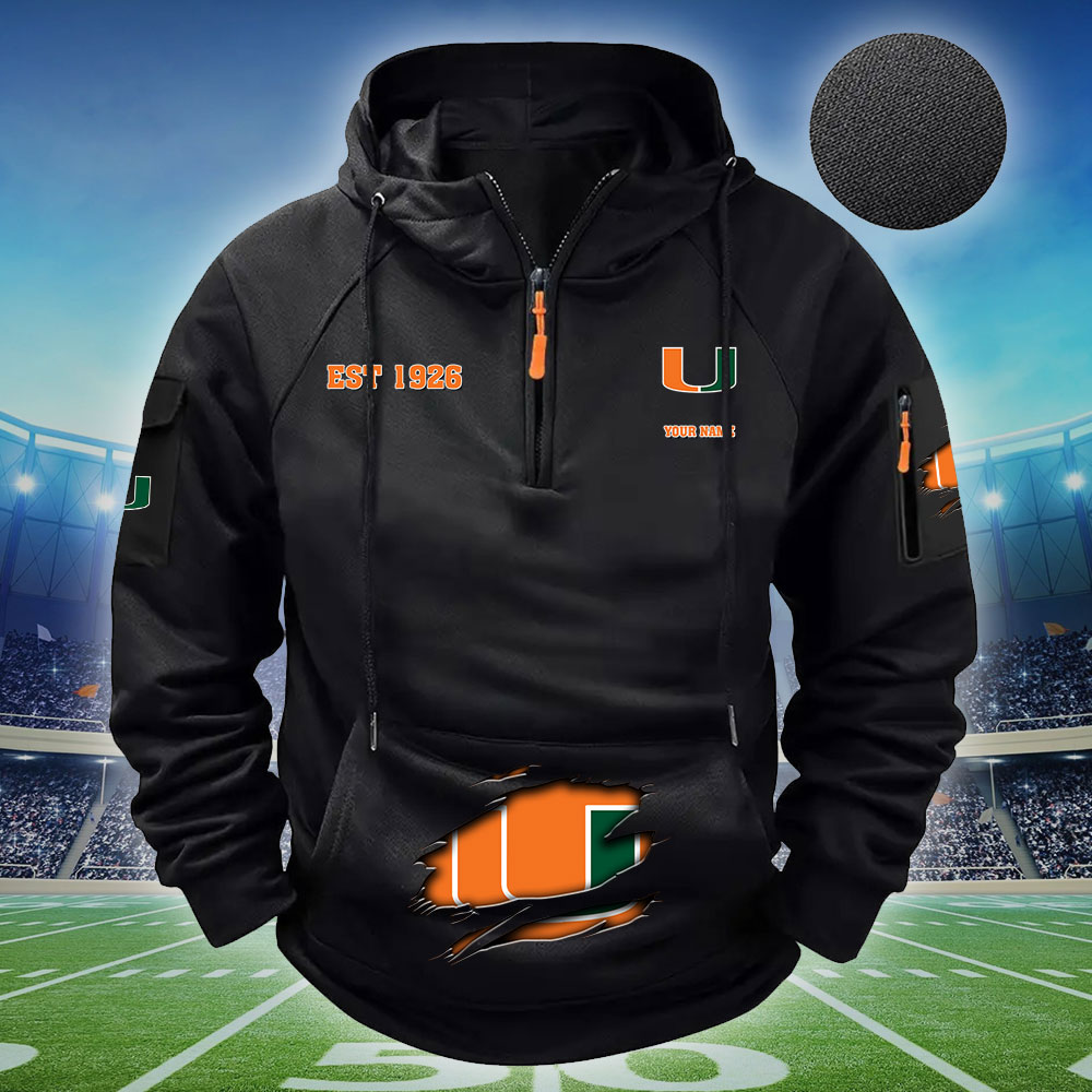 ZNCAA Miami Hurricanes – Football Men’s Zip-Up Hoodie – Custom Name