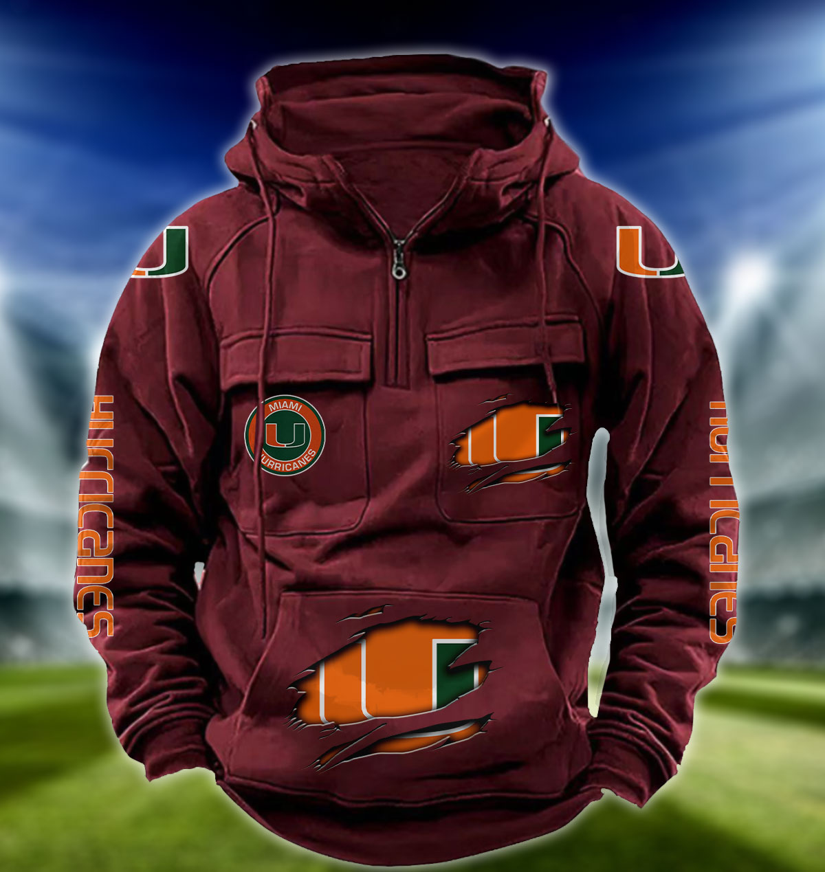 ZNCAA Miami Hurricanes – Football Men’s Zip-Up Hoodie – Custom Name