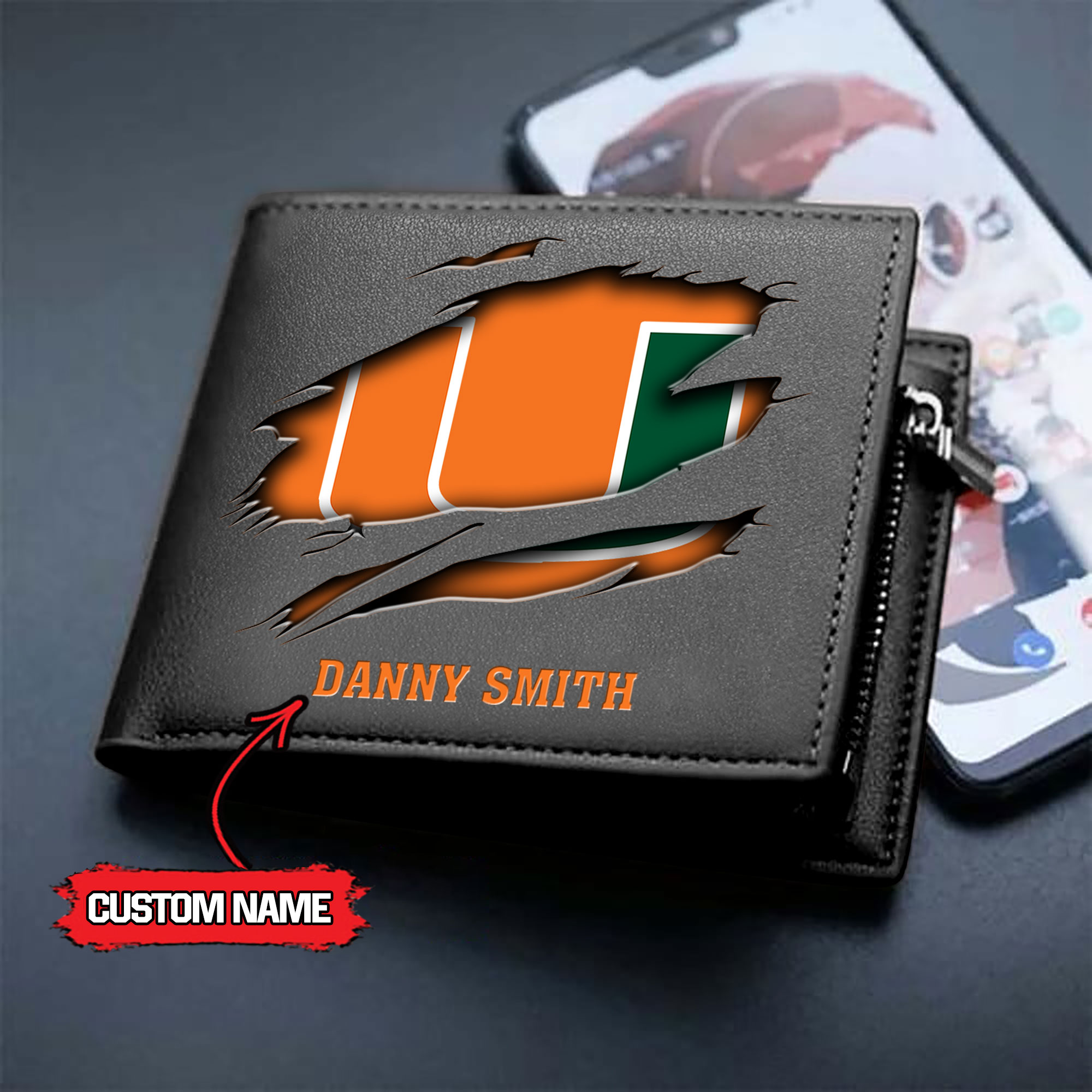 ZNCAA Miami Hurricanes – Women’s Zipper Mini Crossbody Bag – Custom Name
