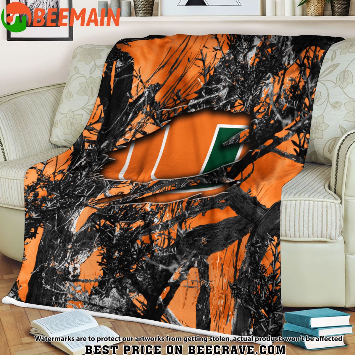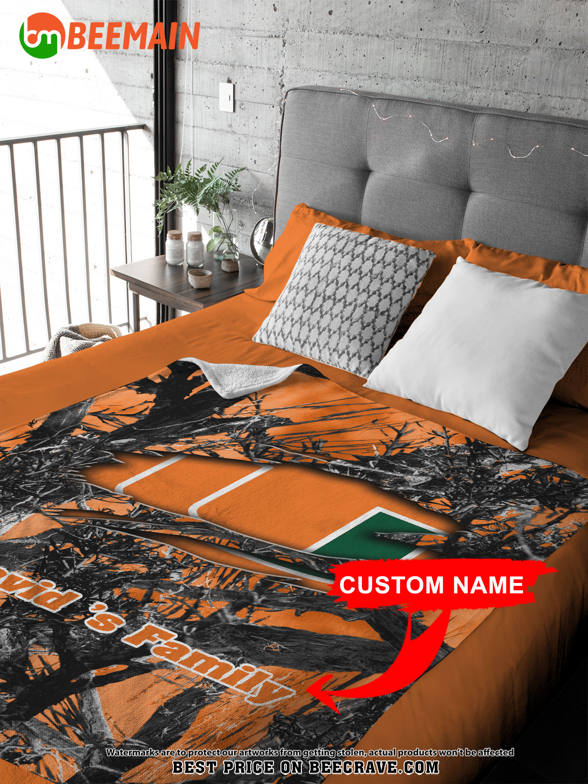 ZNCAA Miami Hurricanes – Football Camo Blanket – Custom Name