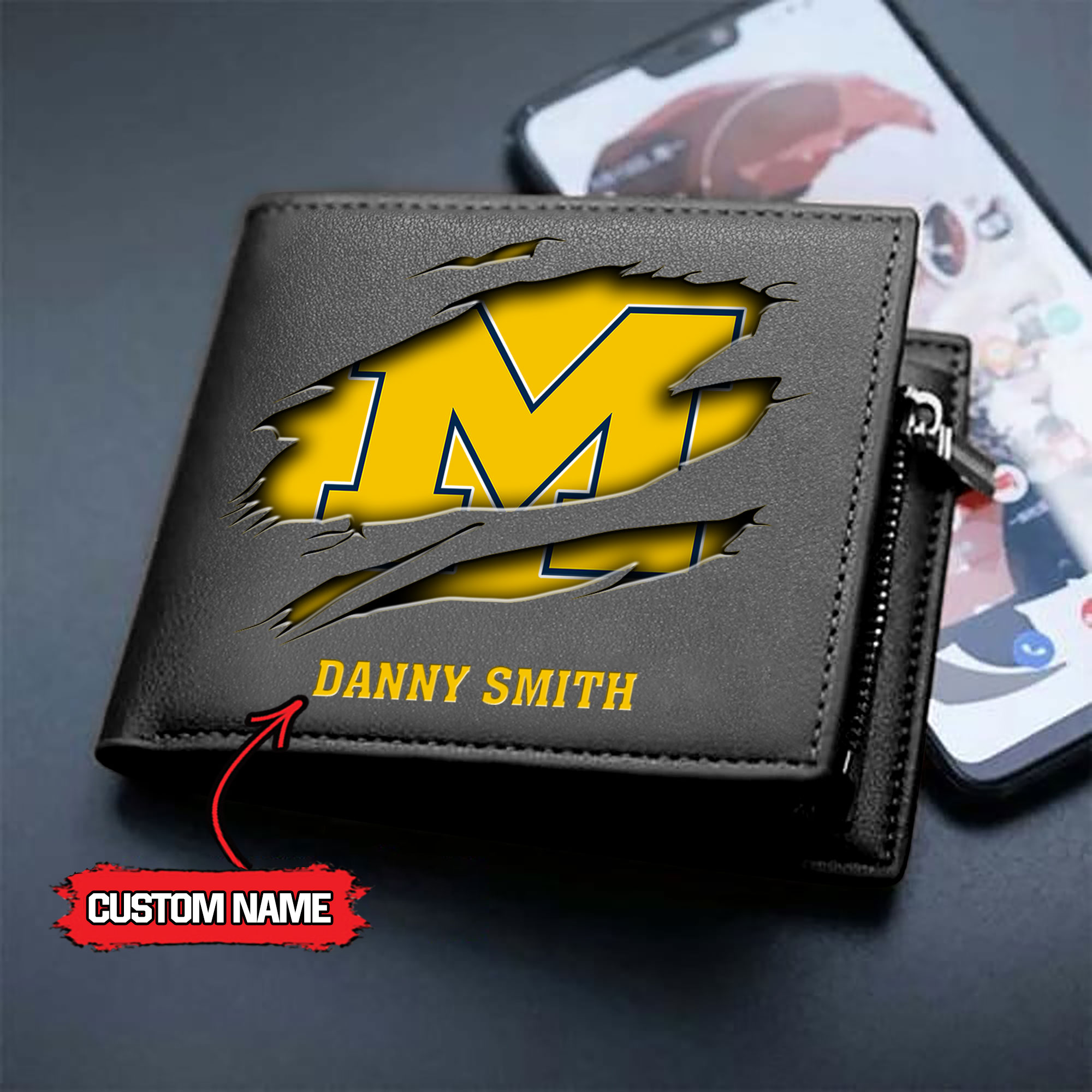 ZNCAA Michigan Wolverines – Men’s Leather Wallet – Custom Name