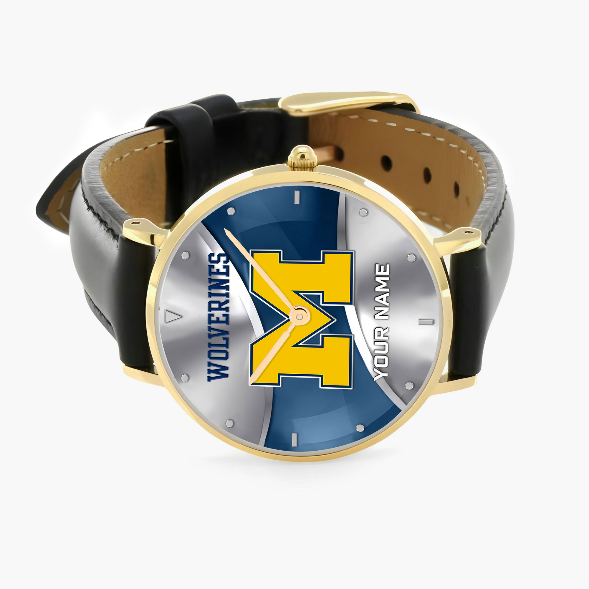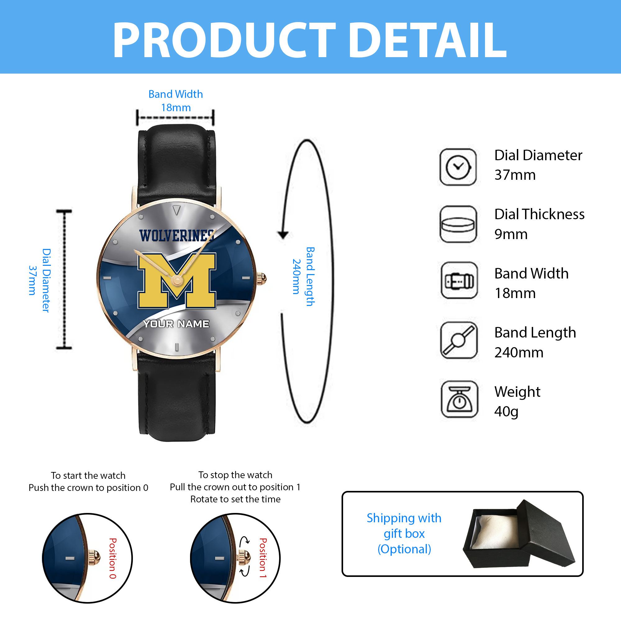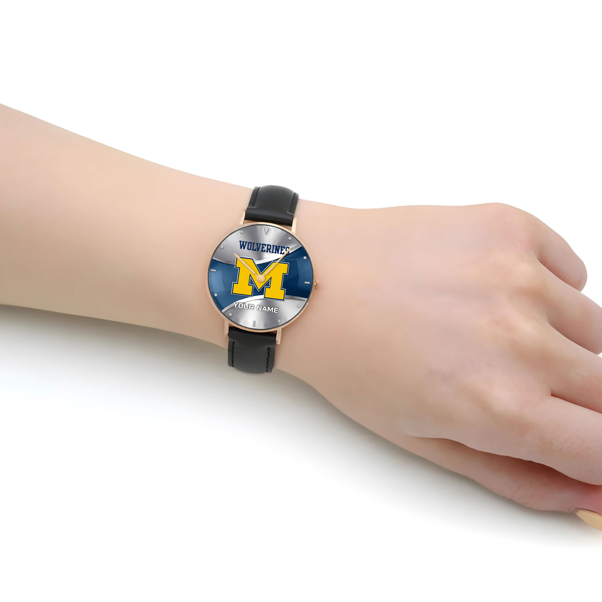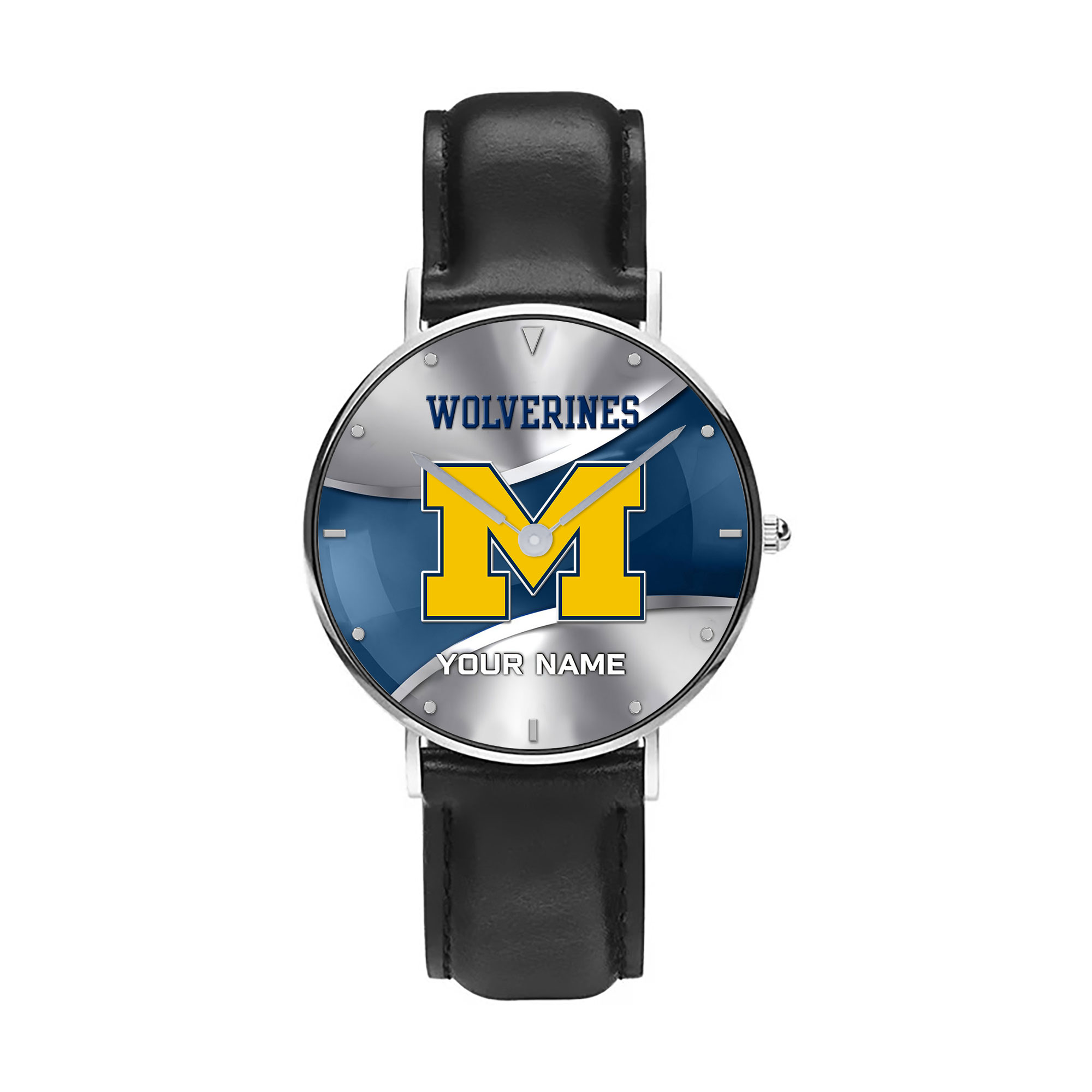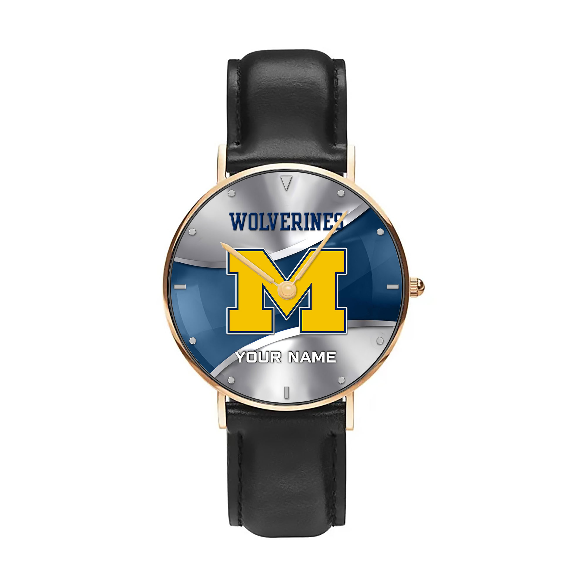 ZNCAA Michigan Wolverines – Football Black Stitched Leather Watch – Custom Name