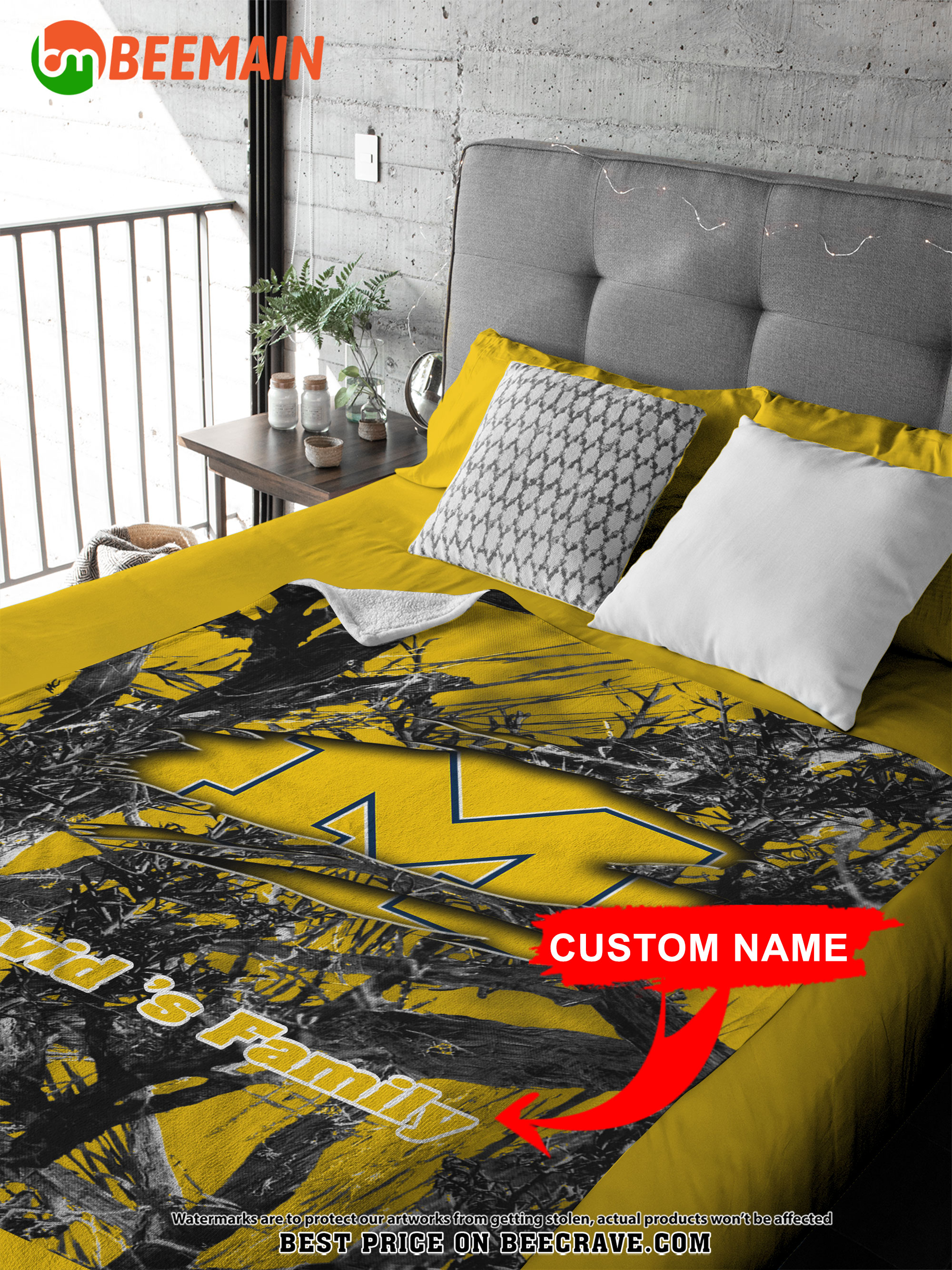 NCAA Michigan Wolverines – Football Camo Blanket – Custom Name