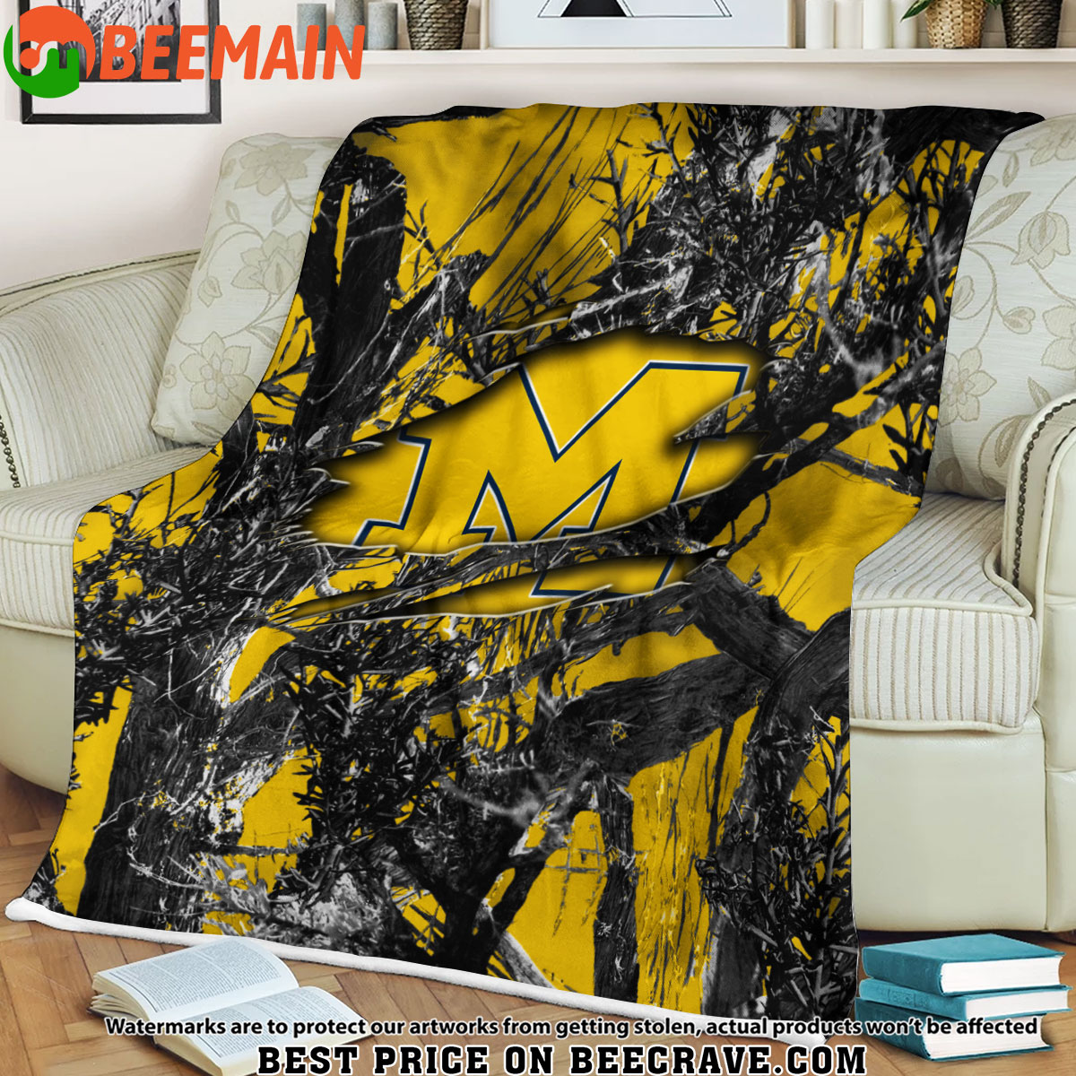 ZNCAA Michigan Wolverines – Football Camo Blanket – Custom Name