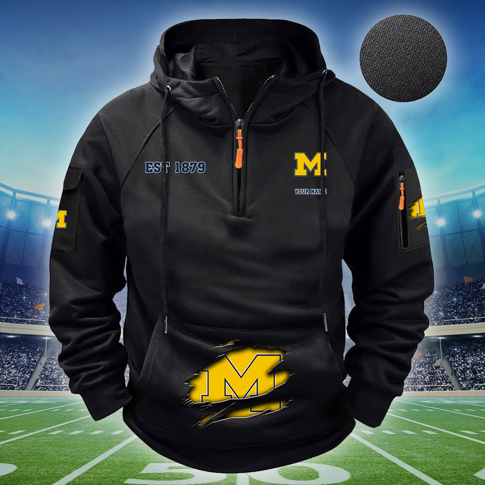 ZNCAA Michigan Wolverines – Football Men’s Zip-Up Hoodie – Custom Name