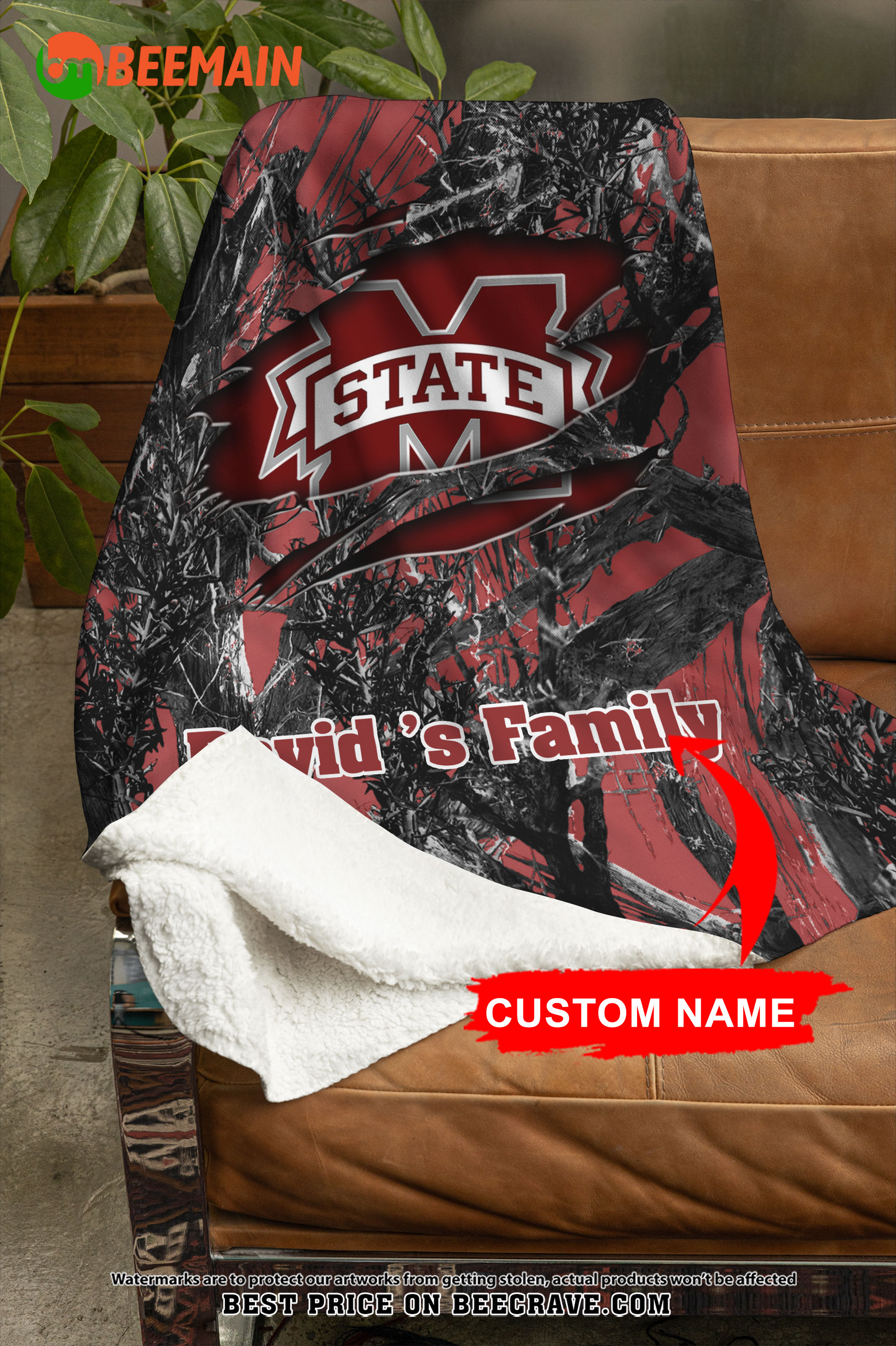 NCAA Mississippi State Bulldogs – Football Camo Blanket – Custom Name