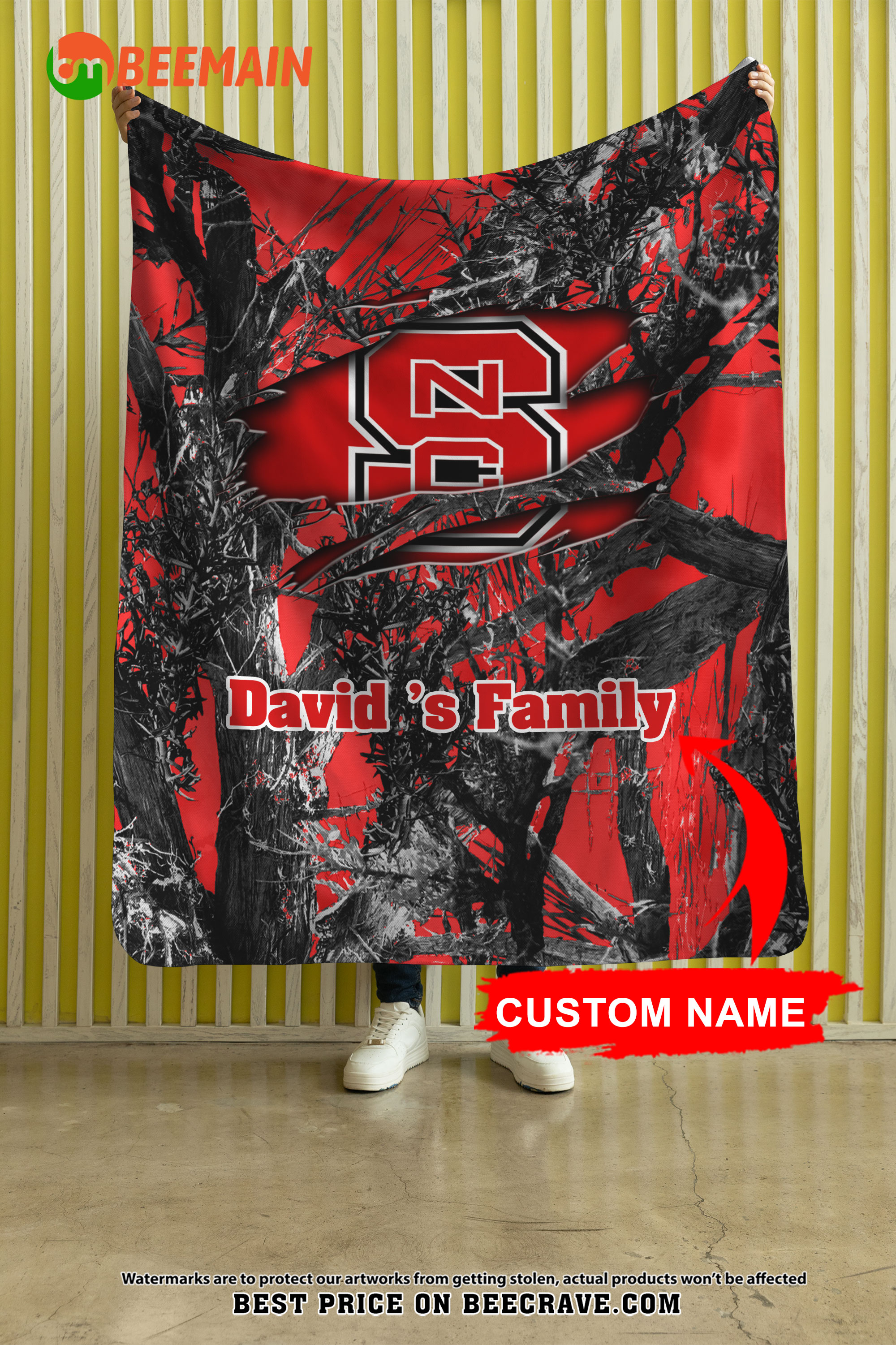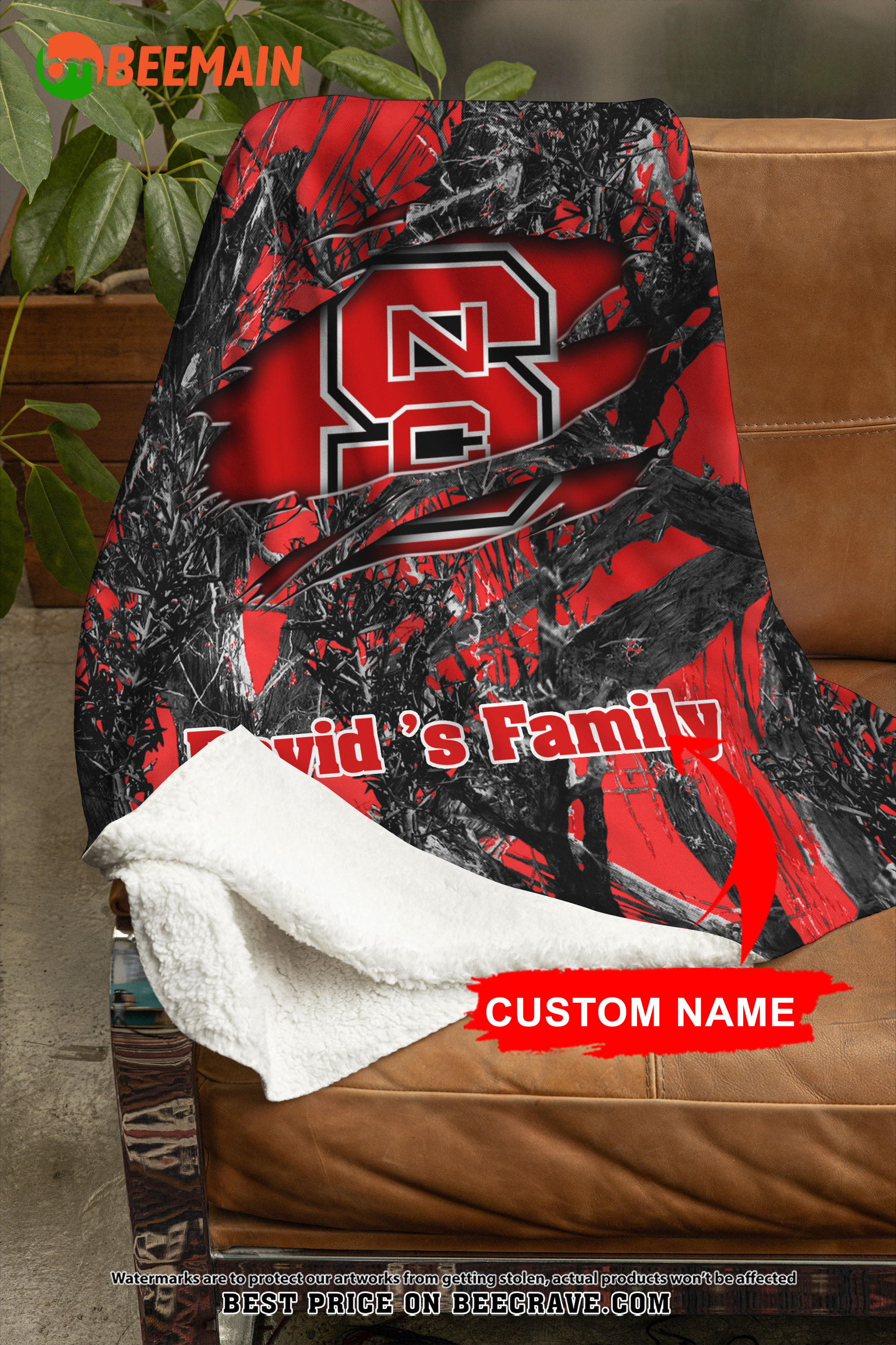 NCAA NC State Wolfpack – Football Camo Blanket – Custom Name