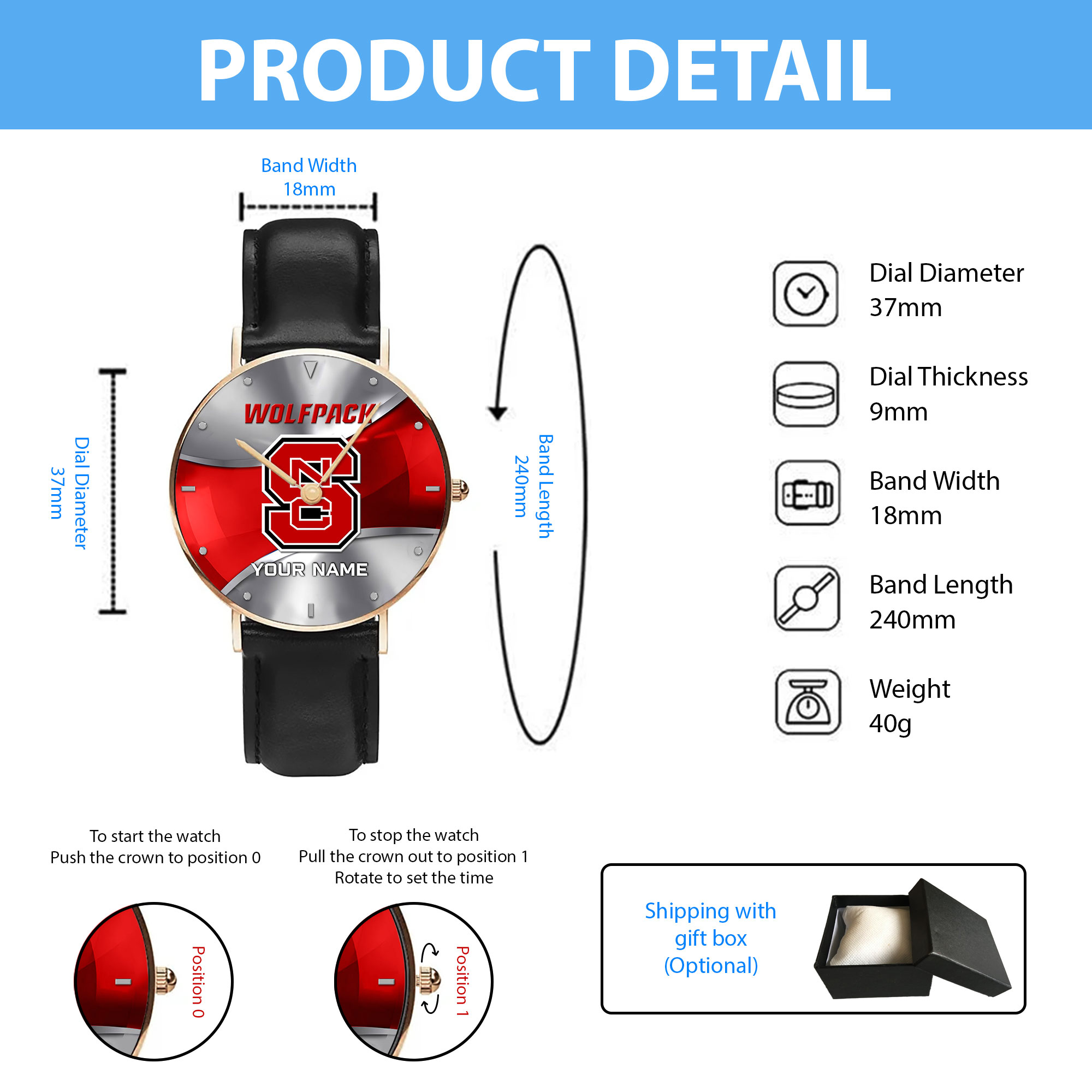 ZNCAA NC State Wolfpack – Football Black Stitched Leather Watch – Custom Name