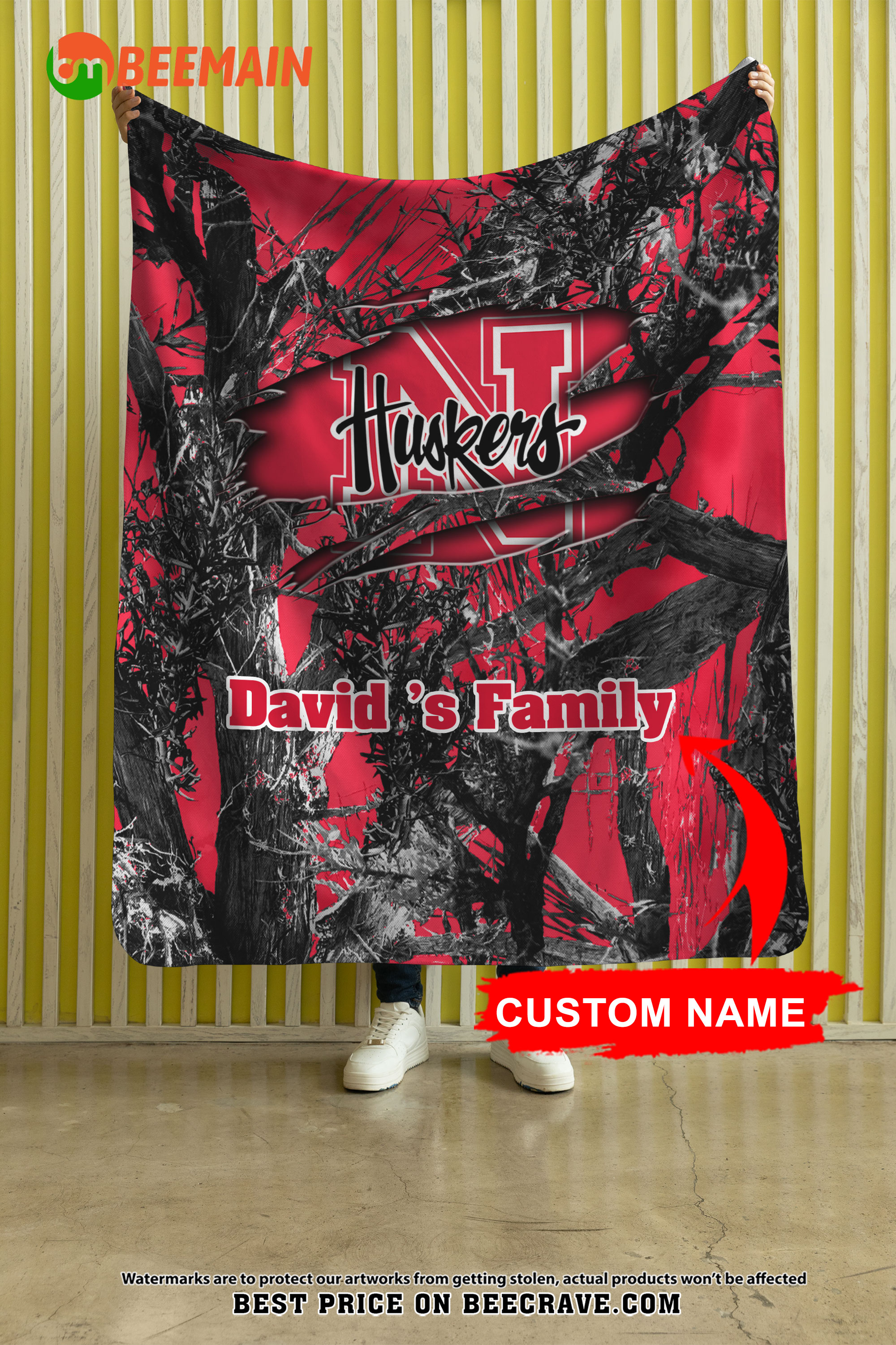 NCAA Nebraska Cornhuskers – Football Camo Blanket – Custom Name
