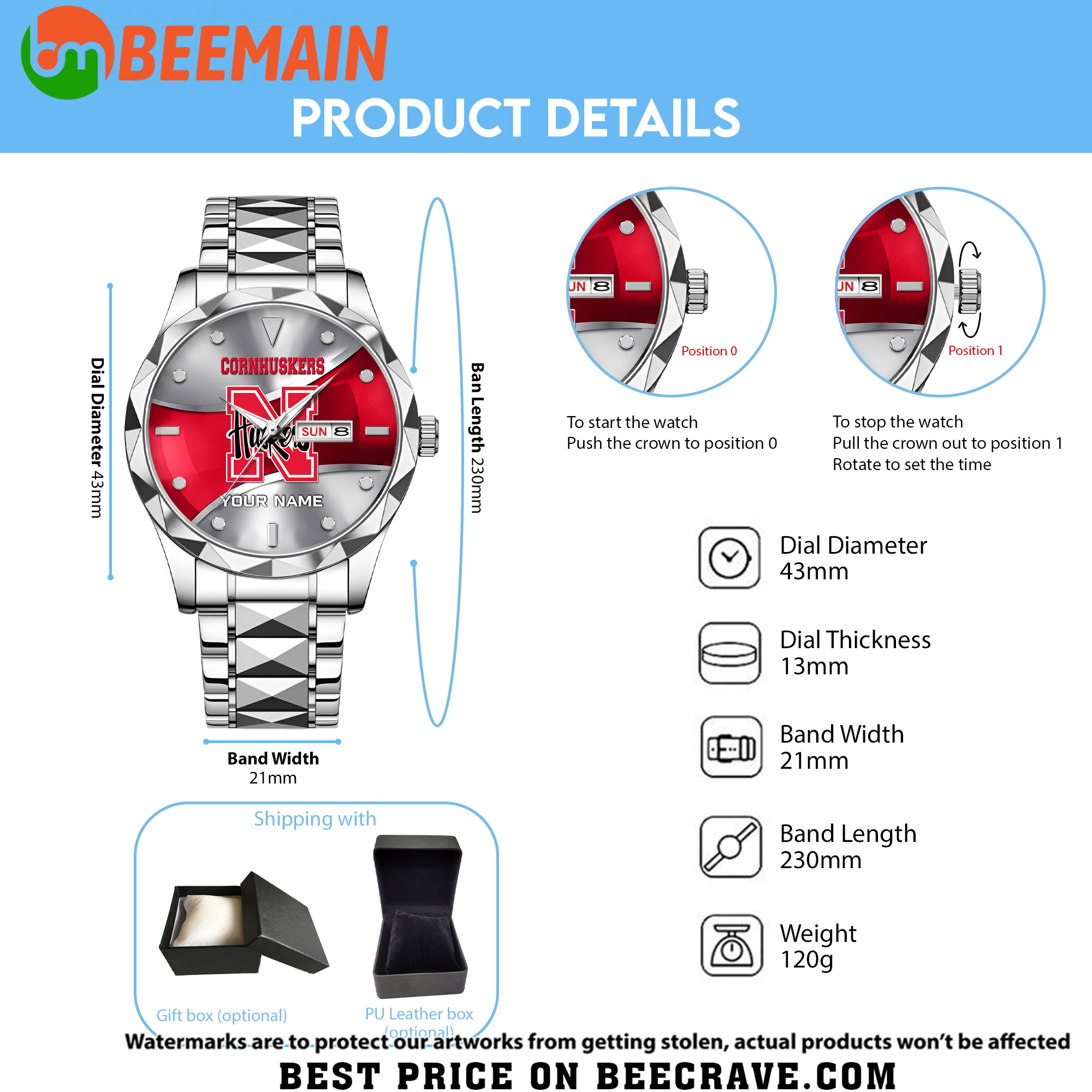 NCAA Nebraska Cornhuskers – Football Alloy Luxury Quartz Watch – Custom Name