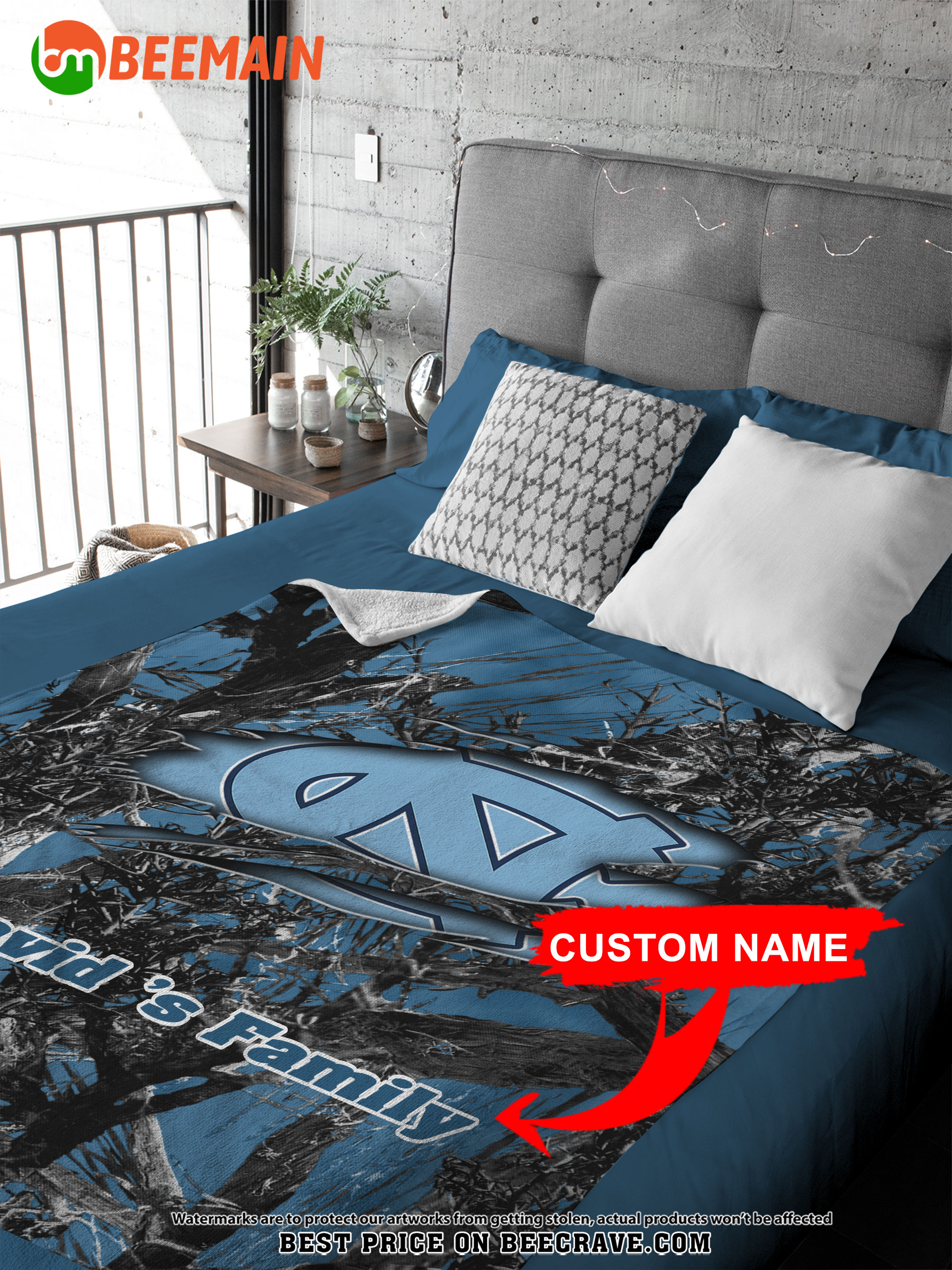 ZNCAA North Carolina Tar Heels – Football Camo Blanket – Custom Name