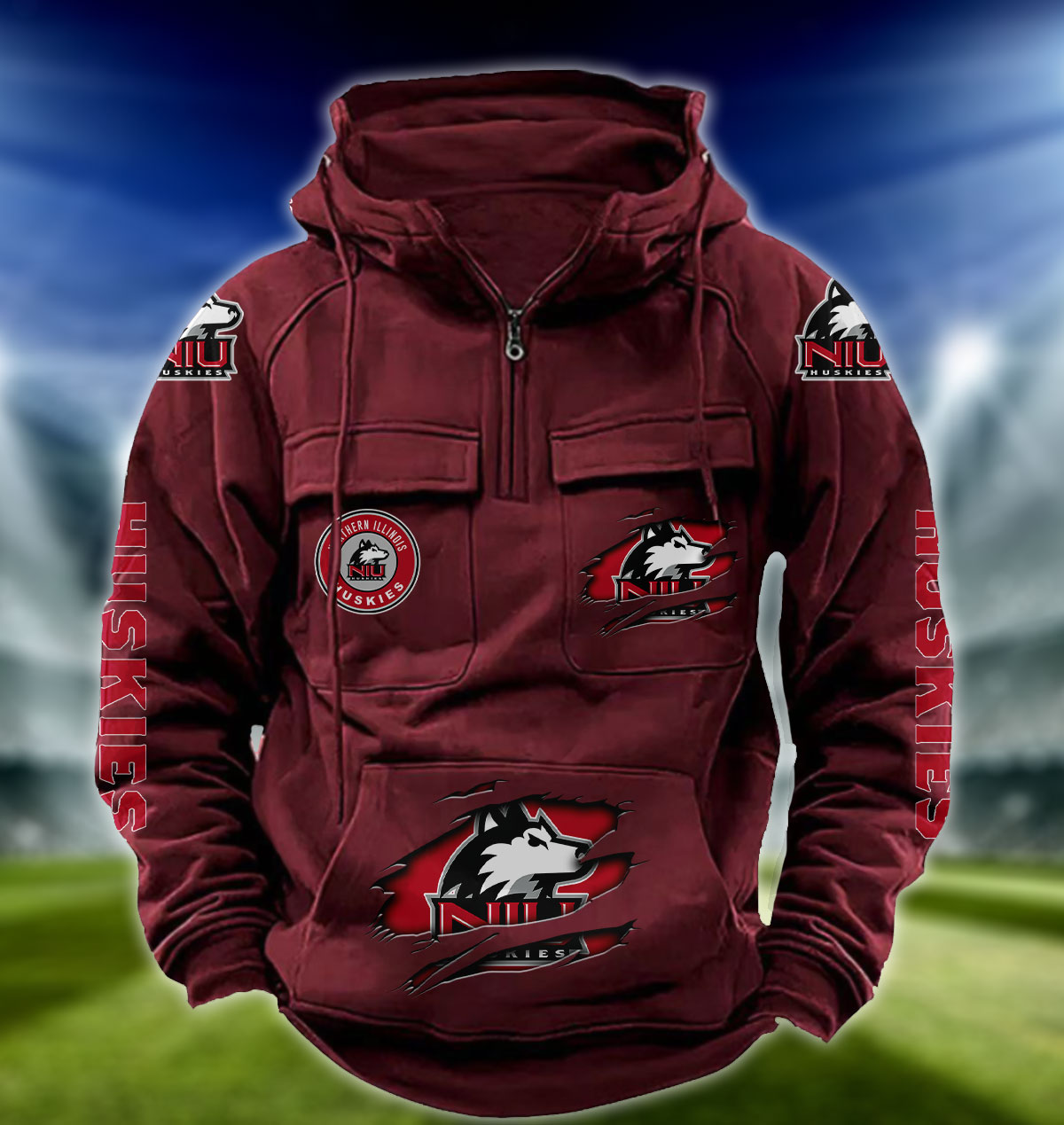 ZNCAA Northern Illinois Huskies – Football Men’s Zip-Up Hoodie – Custom Name
