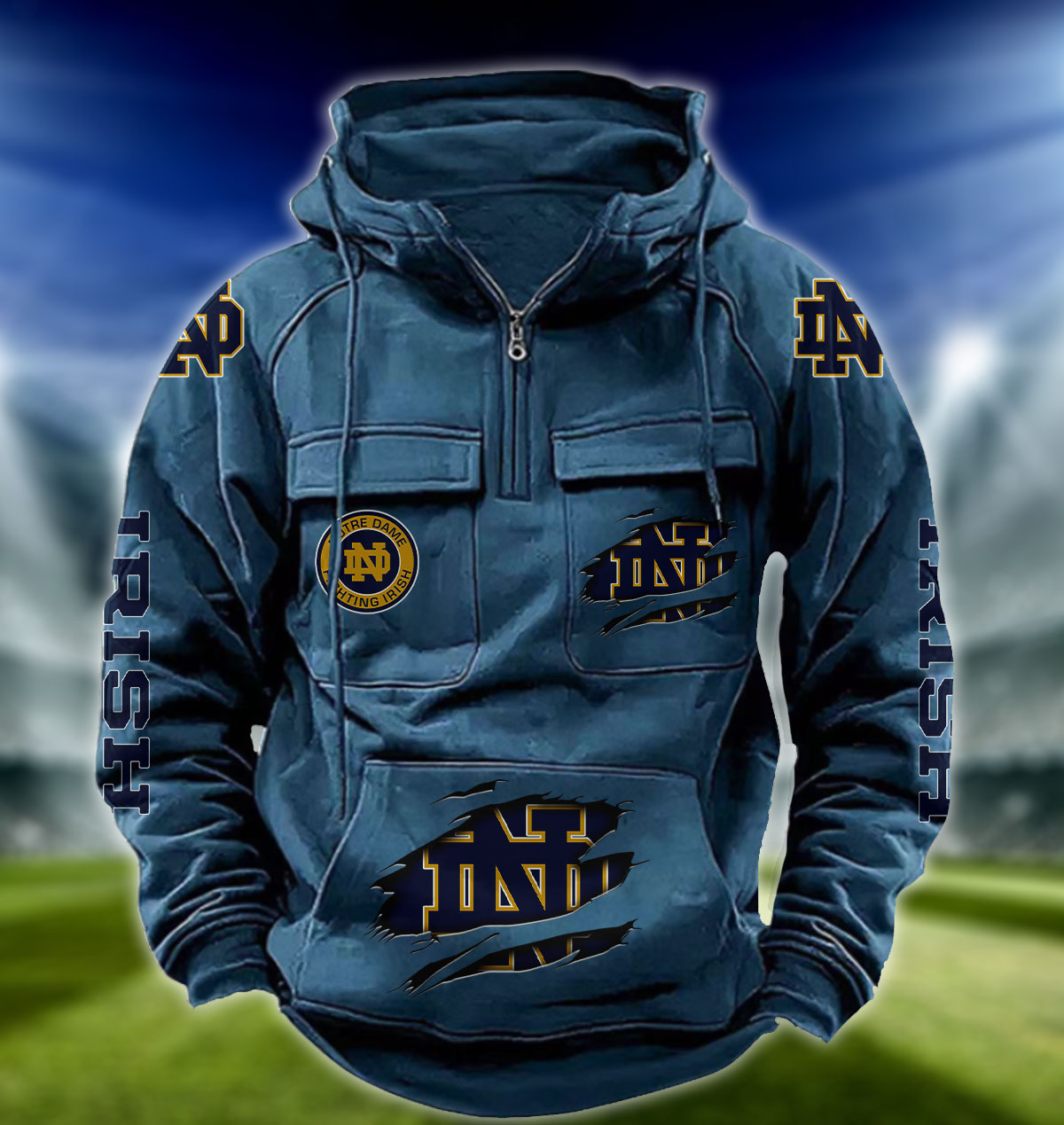 ZNCAA Notre Dame Fighting Irish – Football Men’s Zip-Up Hoodie – Custom Name