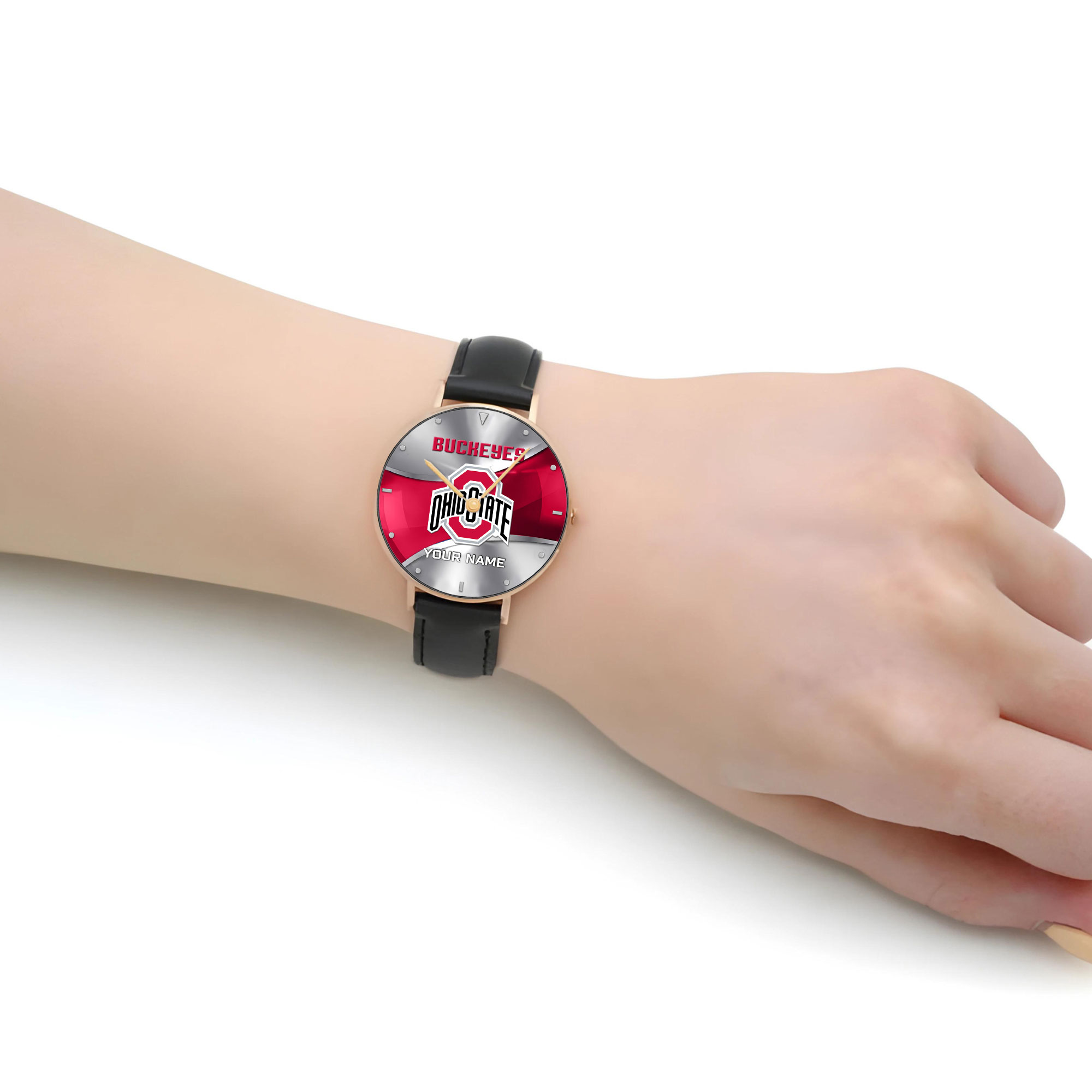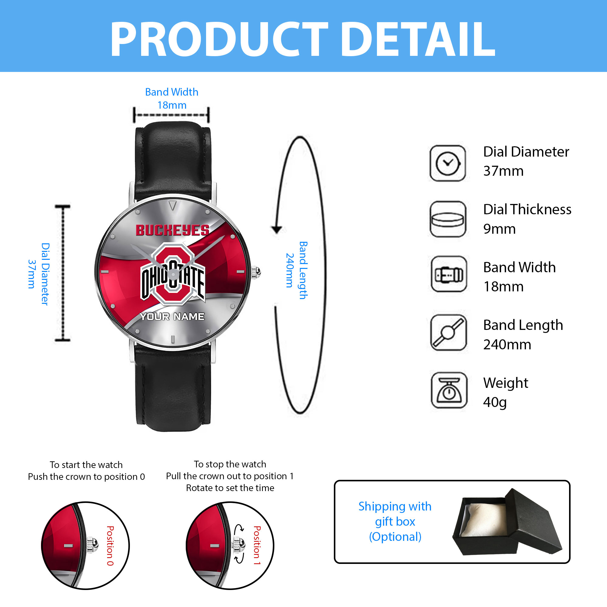 ZNCAA Ohio State Buckeyes – Football Black Stitched Leather Watch – Custom Name