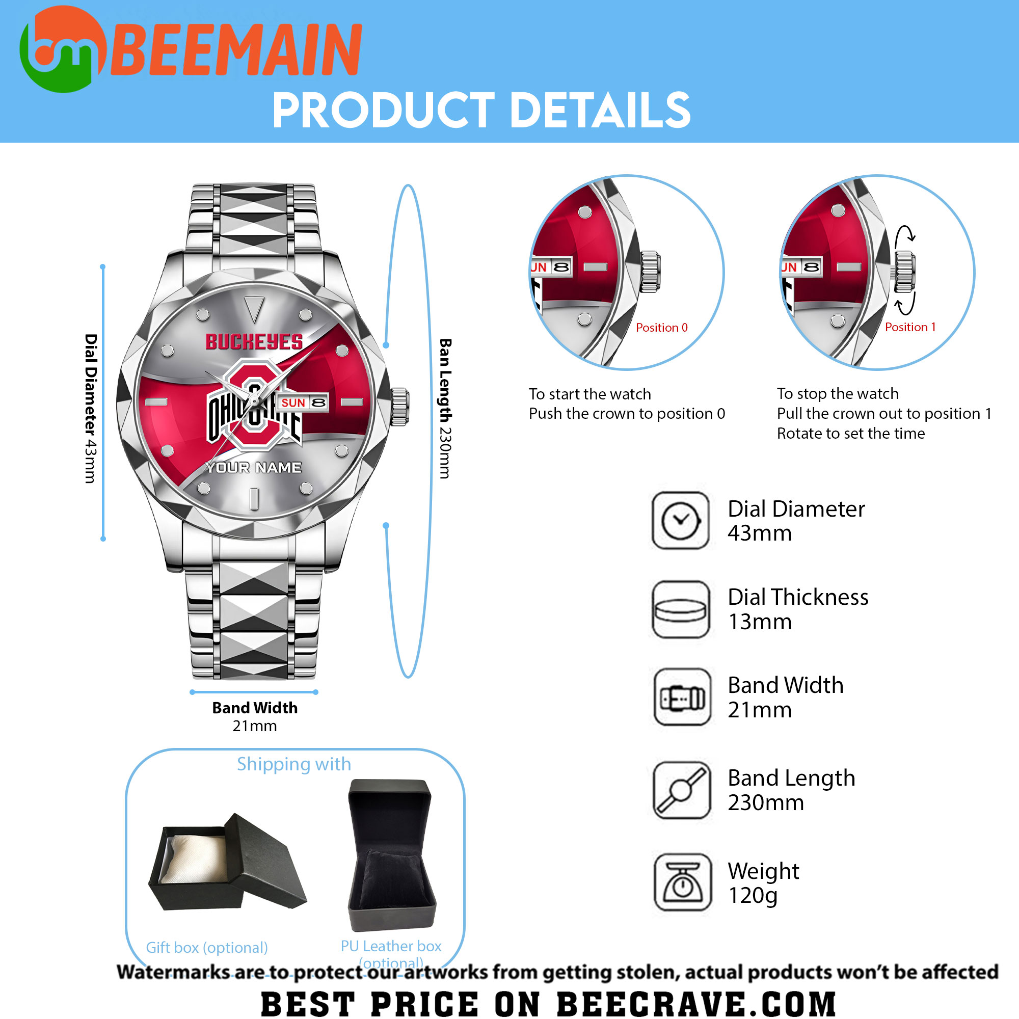 NCAA Ohio State Buckeyes – Football Alloy Luxury Quartz Watch – Custom Name