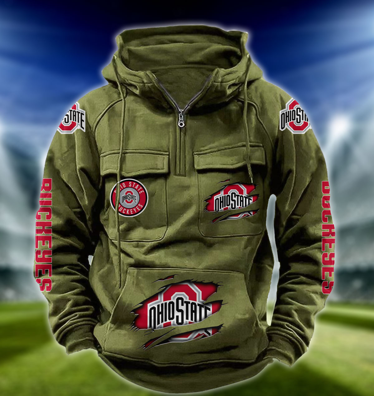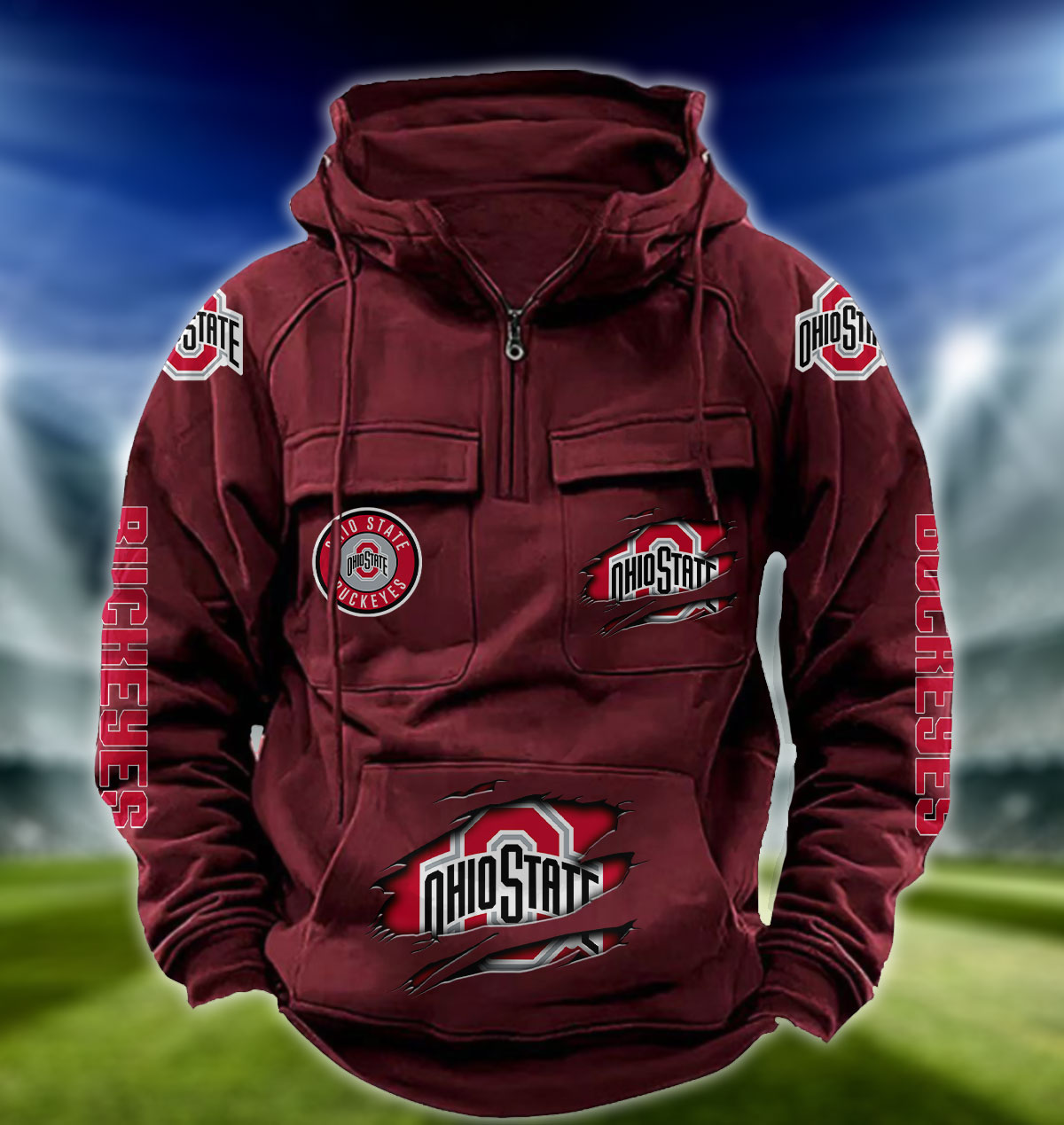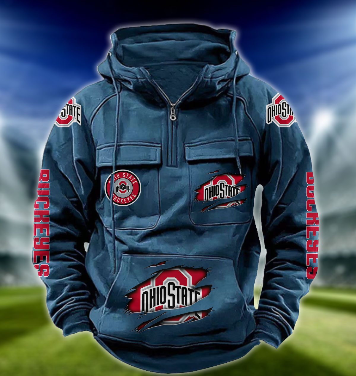 ZNCAA Ohio State Buckeyes – Football Men’s Zip-Up Hoodie – Custom Name