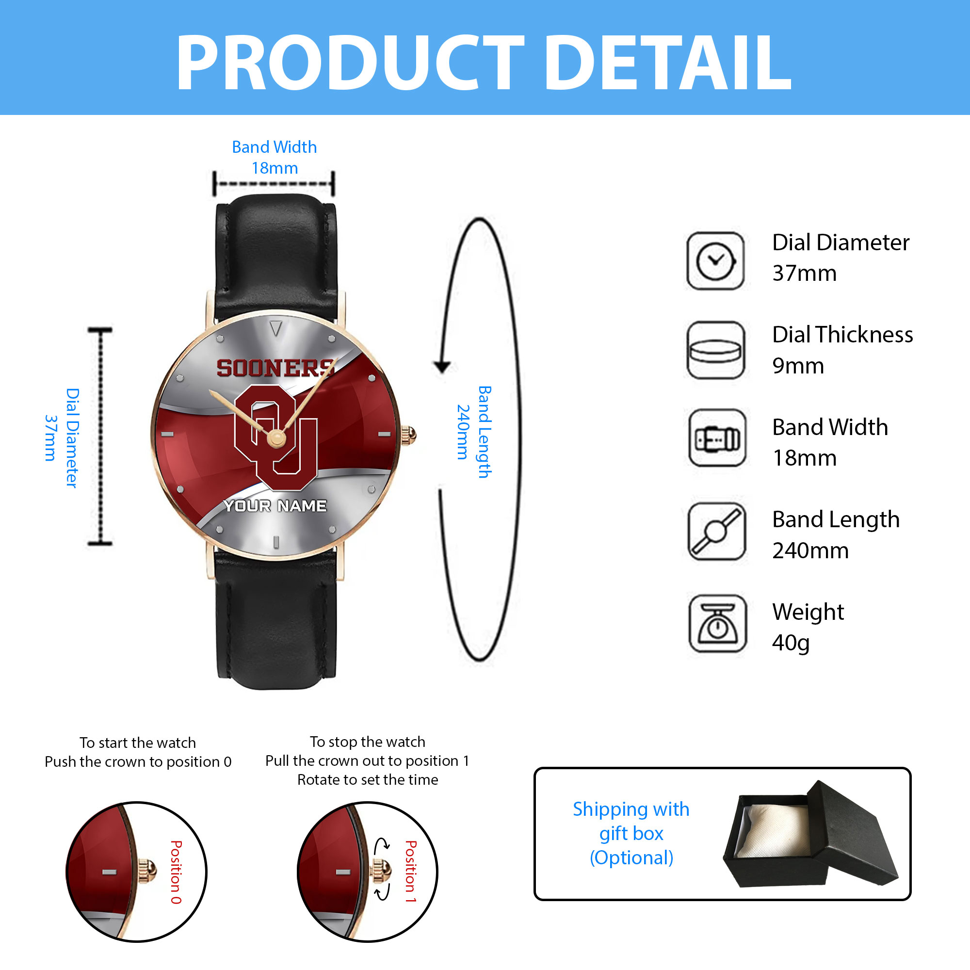 ZNCAA Oklahoma Sooners – Football Black Stitched Leather Watch – Custom Name