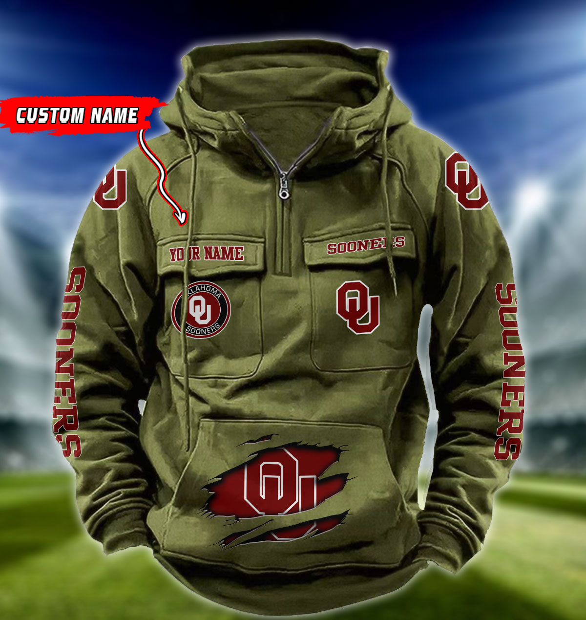 ZNCAA Oklahoma Sooners – Football Men’s Zip-Up Hoodie – Custom Name