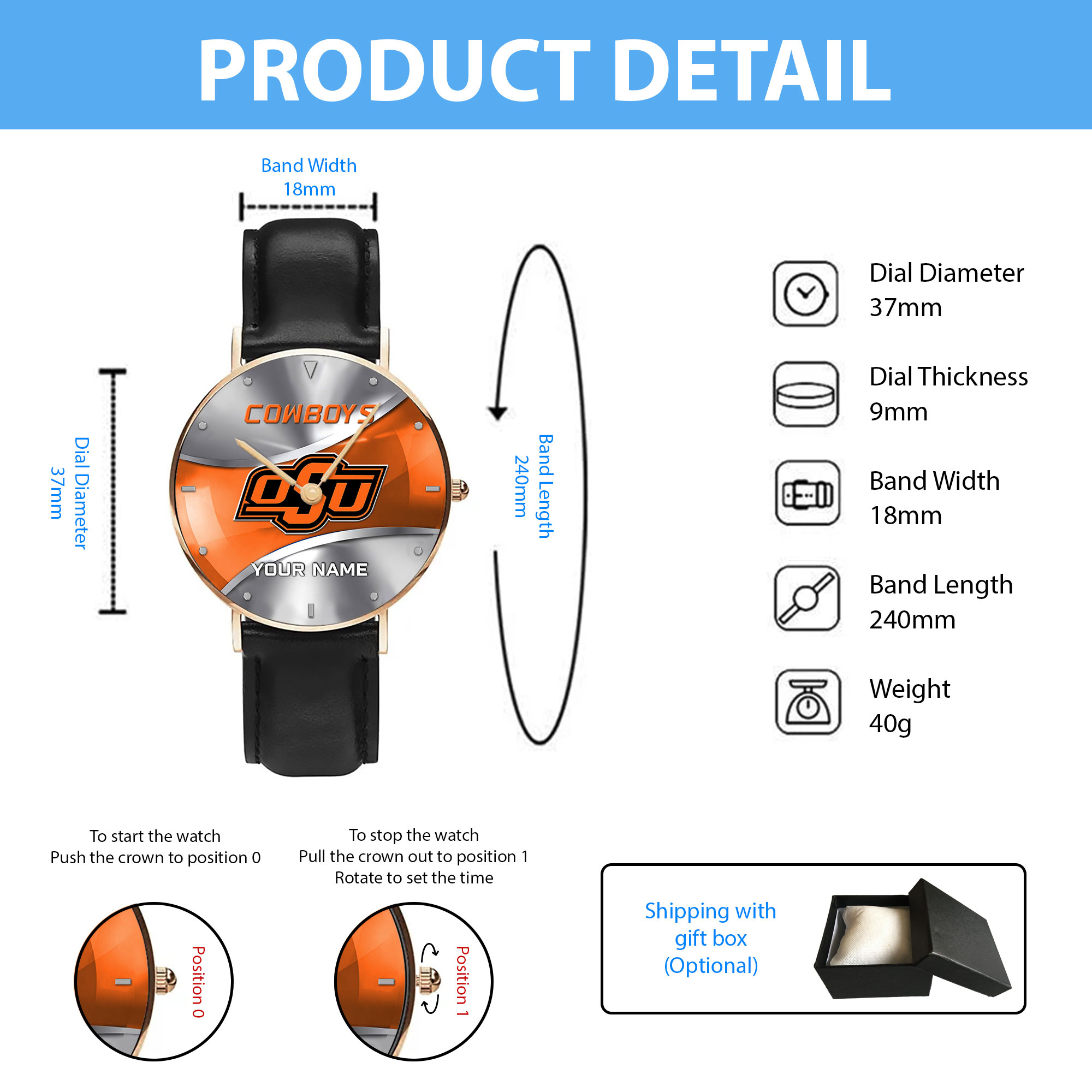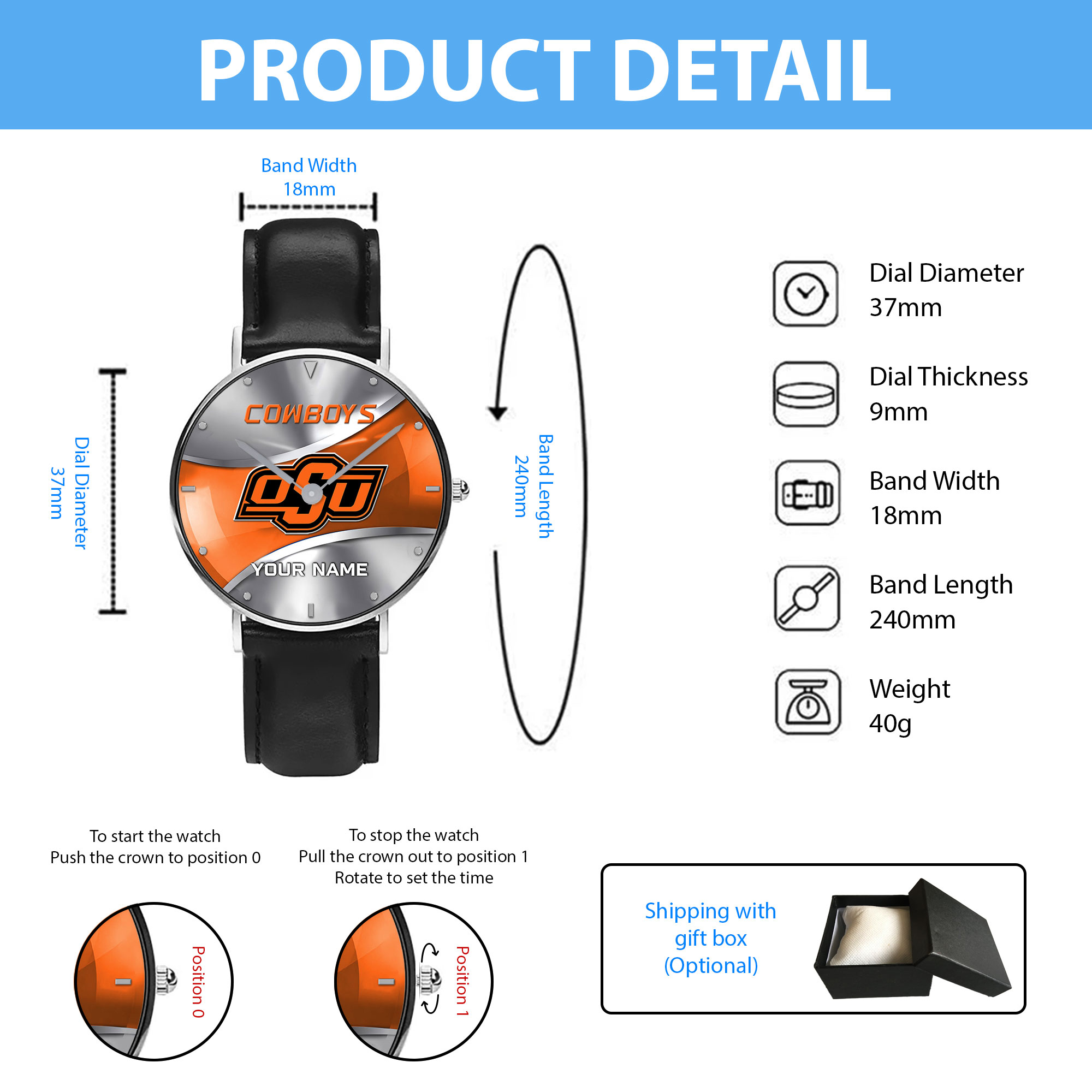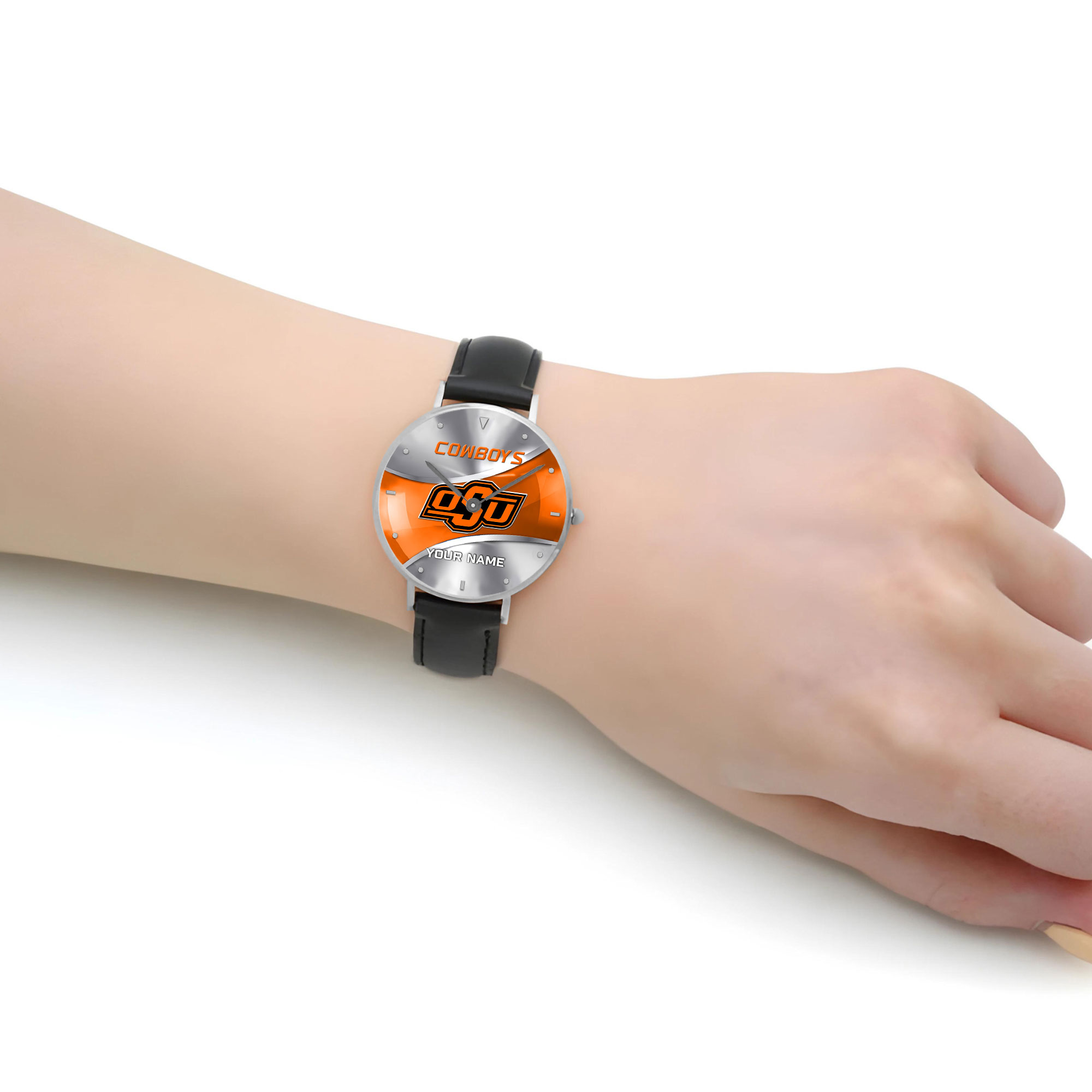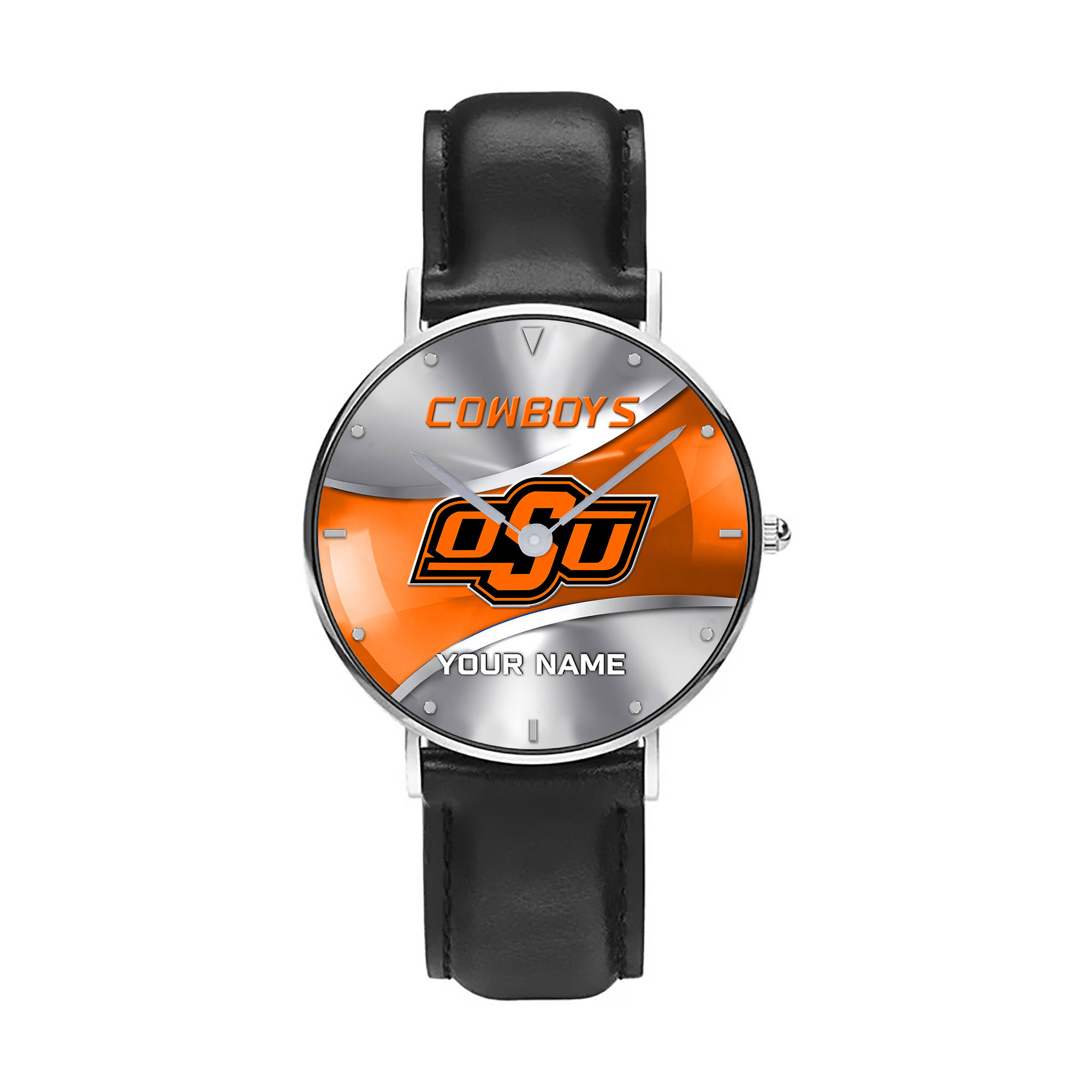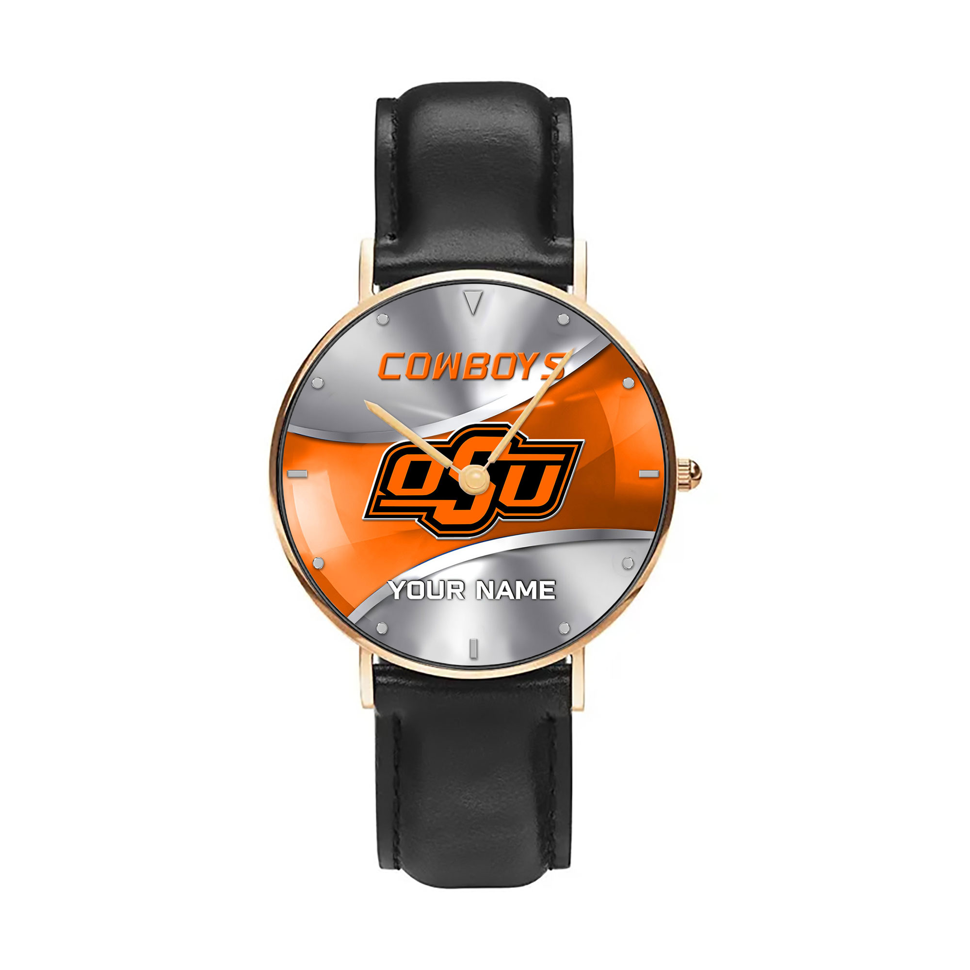 ZNCAA Oklahoma State Cowboys – Football Black Stitched Leather Watch – Custom Name