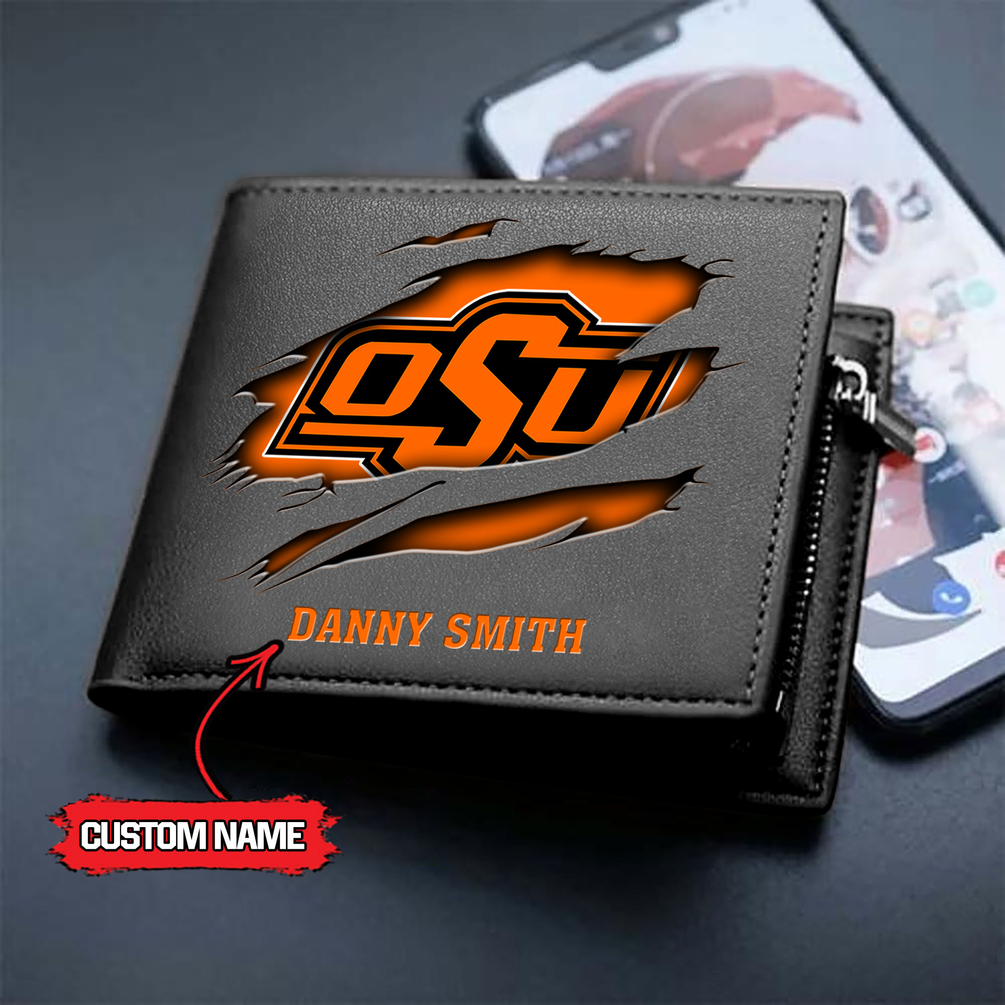 ZNCAA Oklahoma State Cowboys – Men’s Leather Wallet – Custom Name