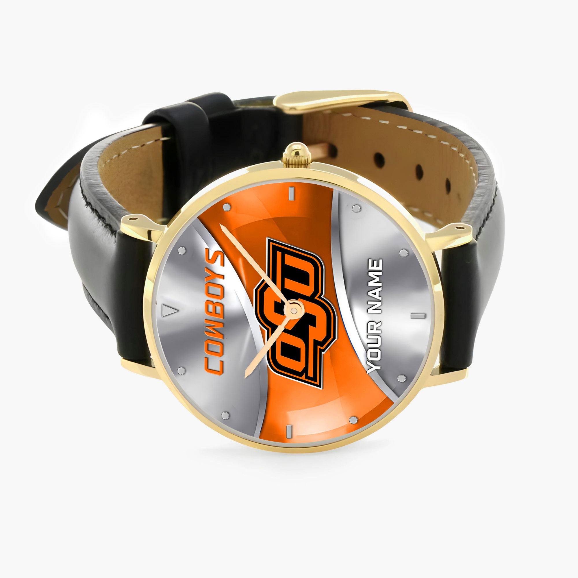 ZNCAA Oklahoma State Cowboys – Football Black Stitched Leather Watch – Custom Name