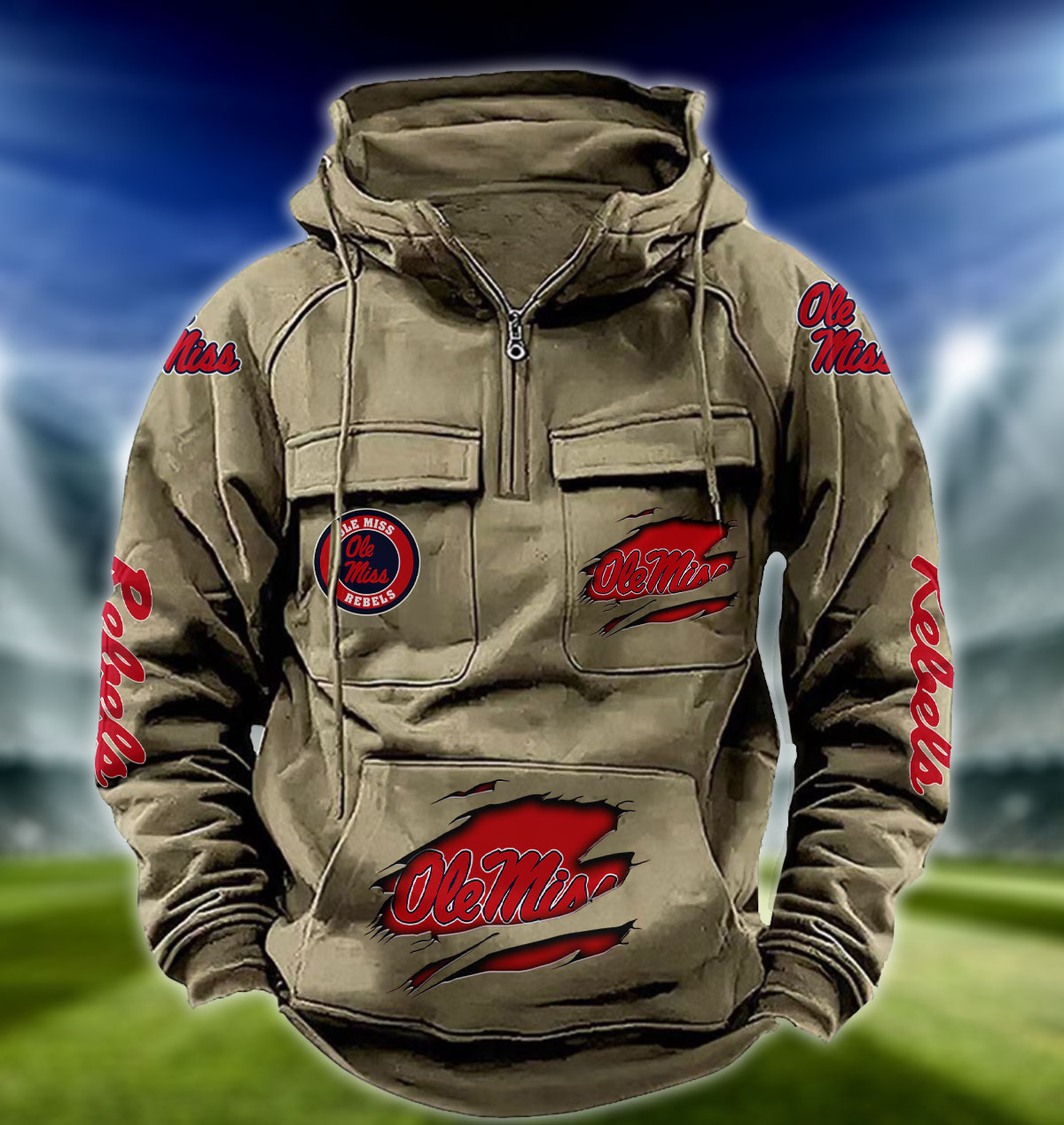 ZNCAA Ole Miss Rebels – Football Men’s Zip-Up Hoodie – Custom Name