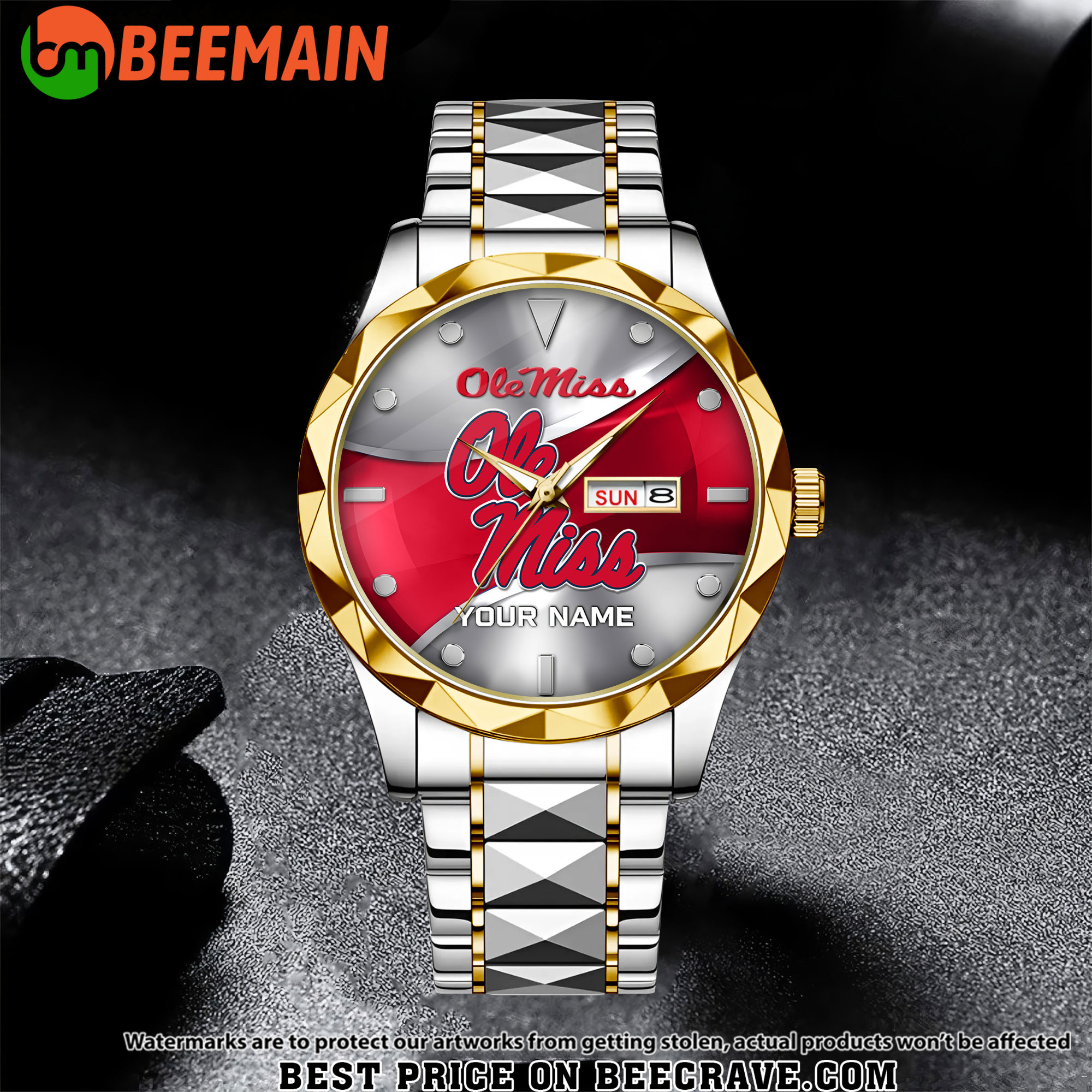 ZNCAA Ole Miss Rebels – Football Alloy Luxury Quartz Watch – Custom Name