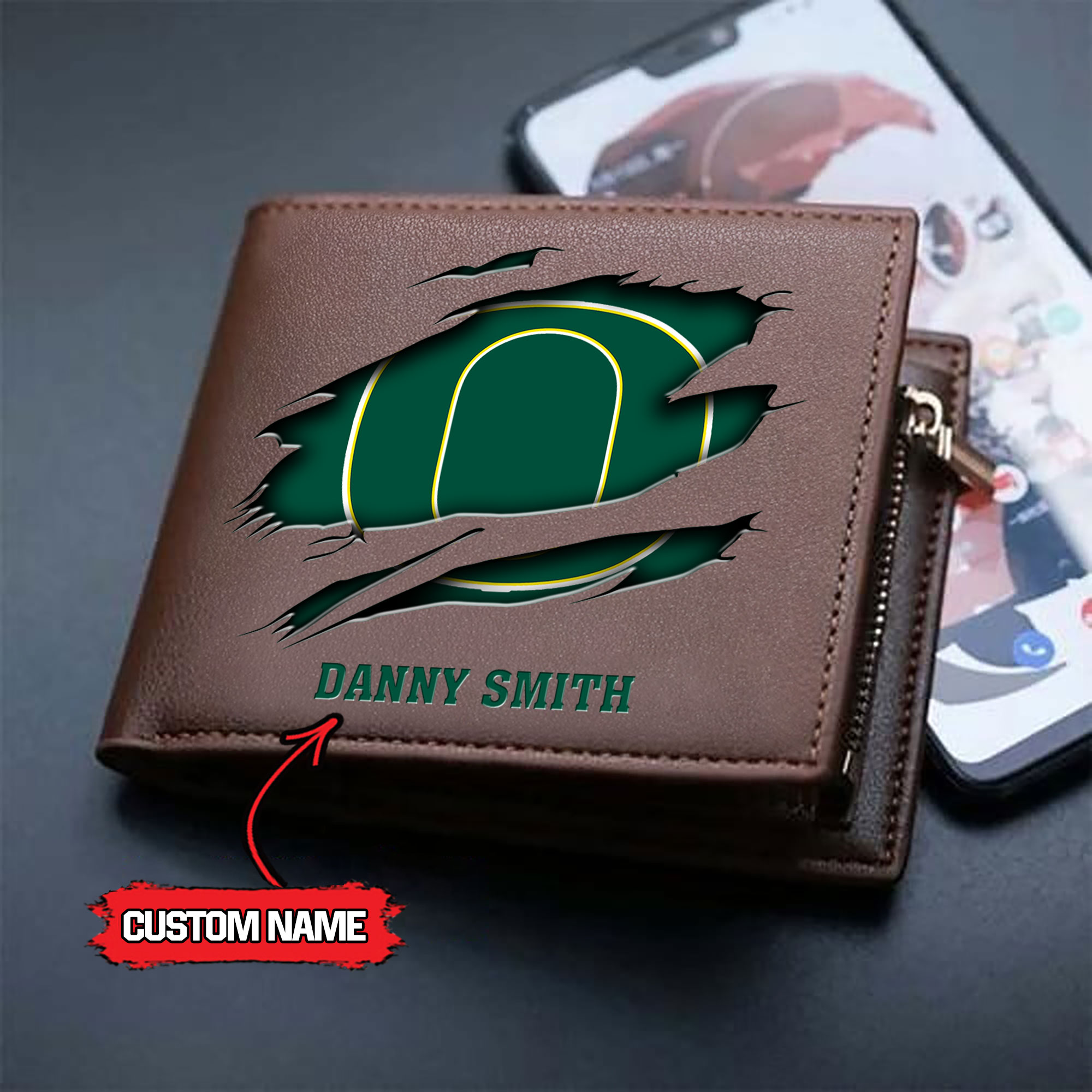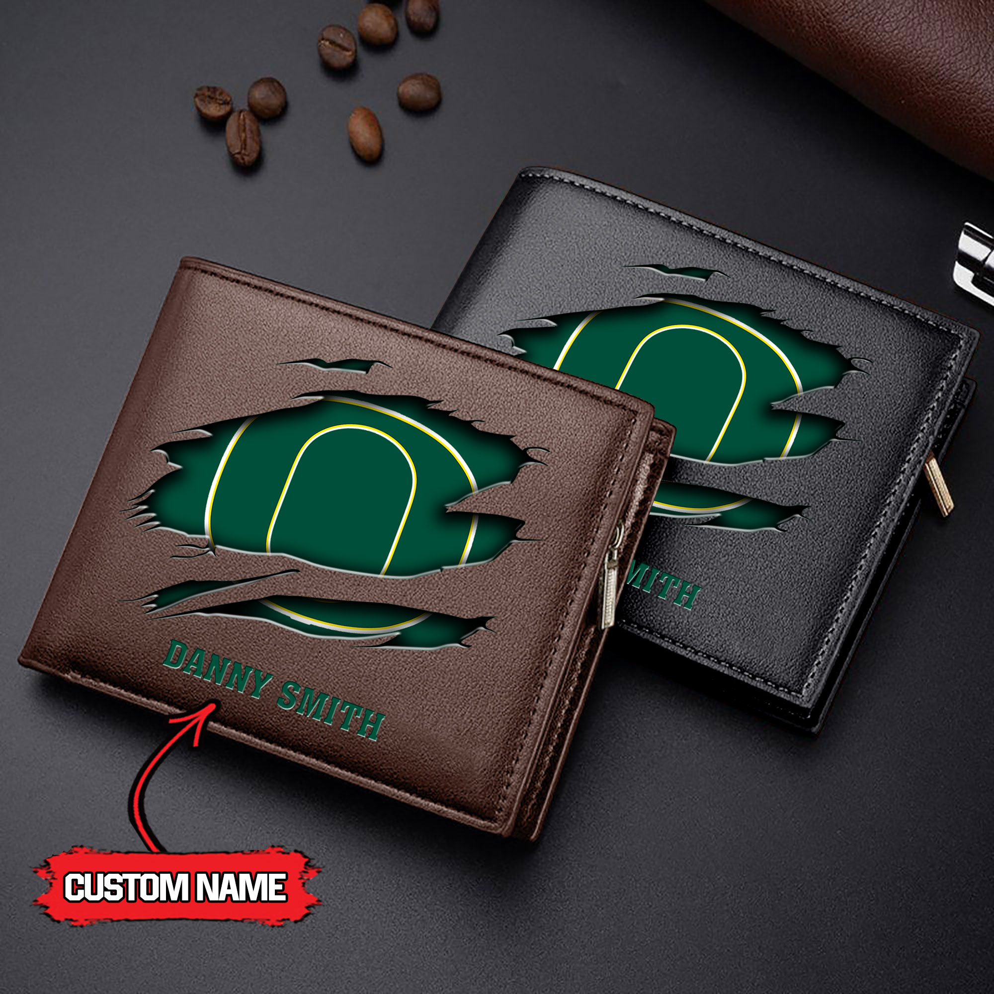 ZNCAA Oregon Ducks – Men’s Leather Wallet – Custom Name
