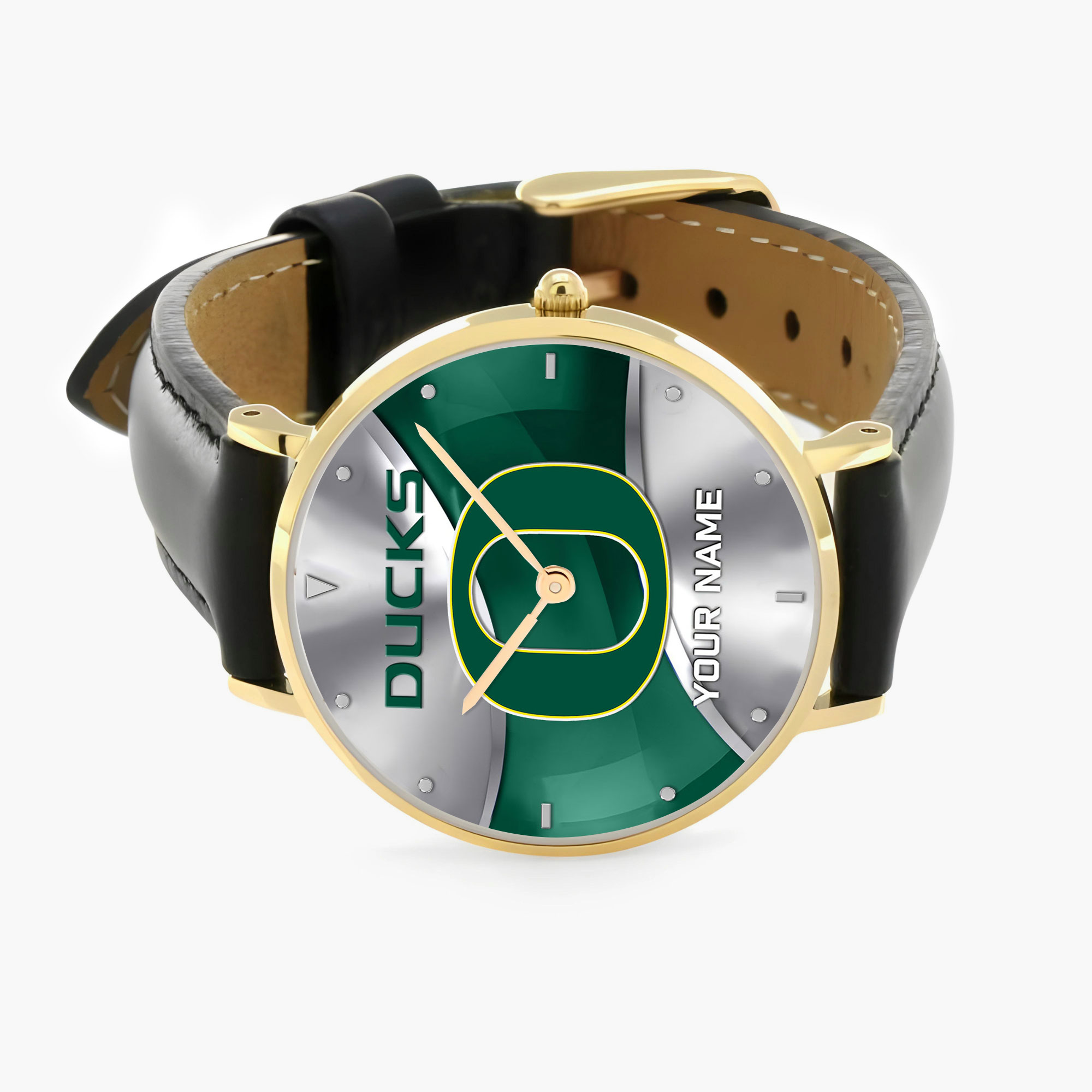 ZNCAA Oregon Ducks – Football Black Stitched Leather Watch – Custom Name