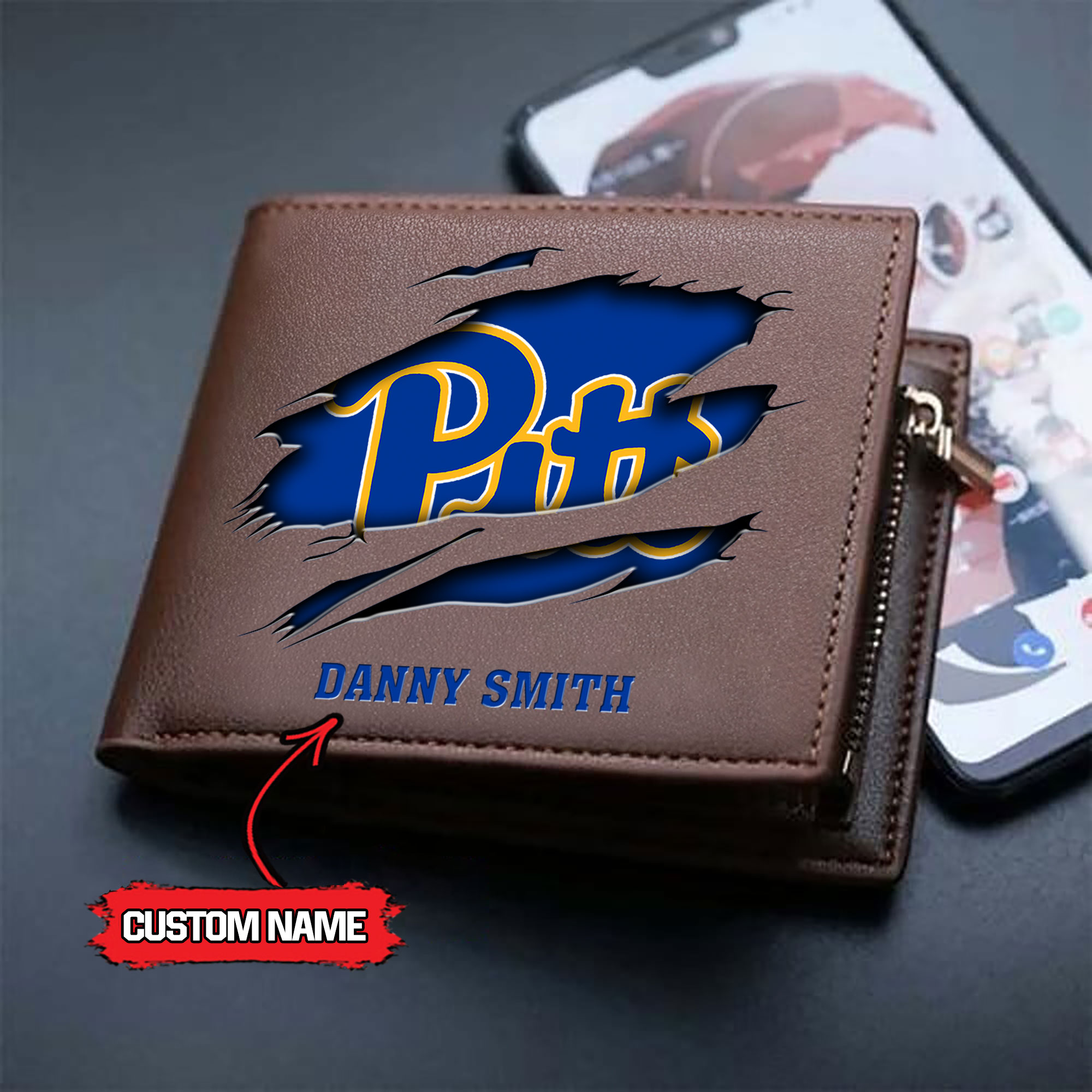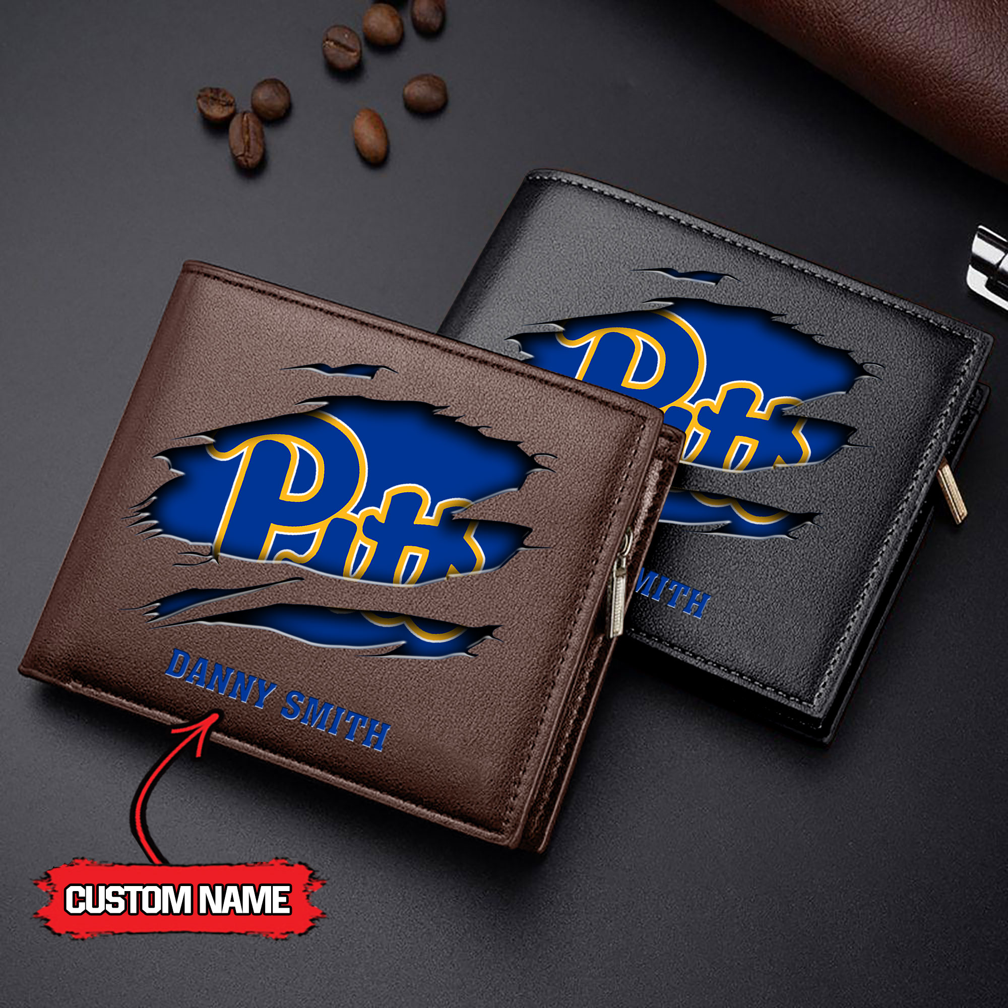 ZNCAA Pittsburgh Panthers – Men’s Leather Wallet – Custom Name