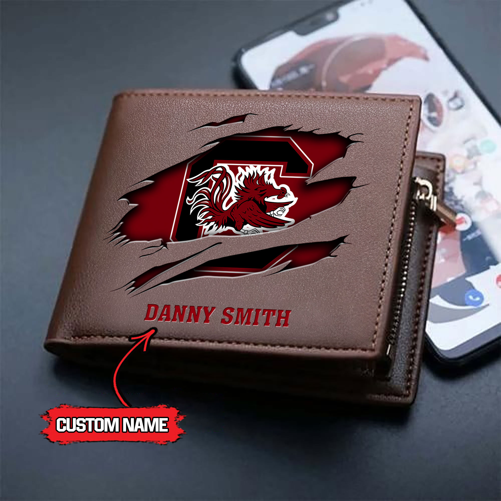 ZNCAA South Carolina Gamecocks – Men’s Leather Wallet – Custom Name