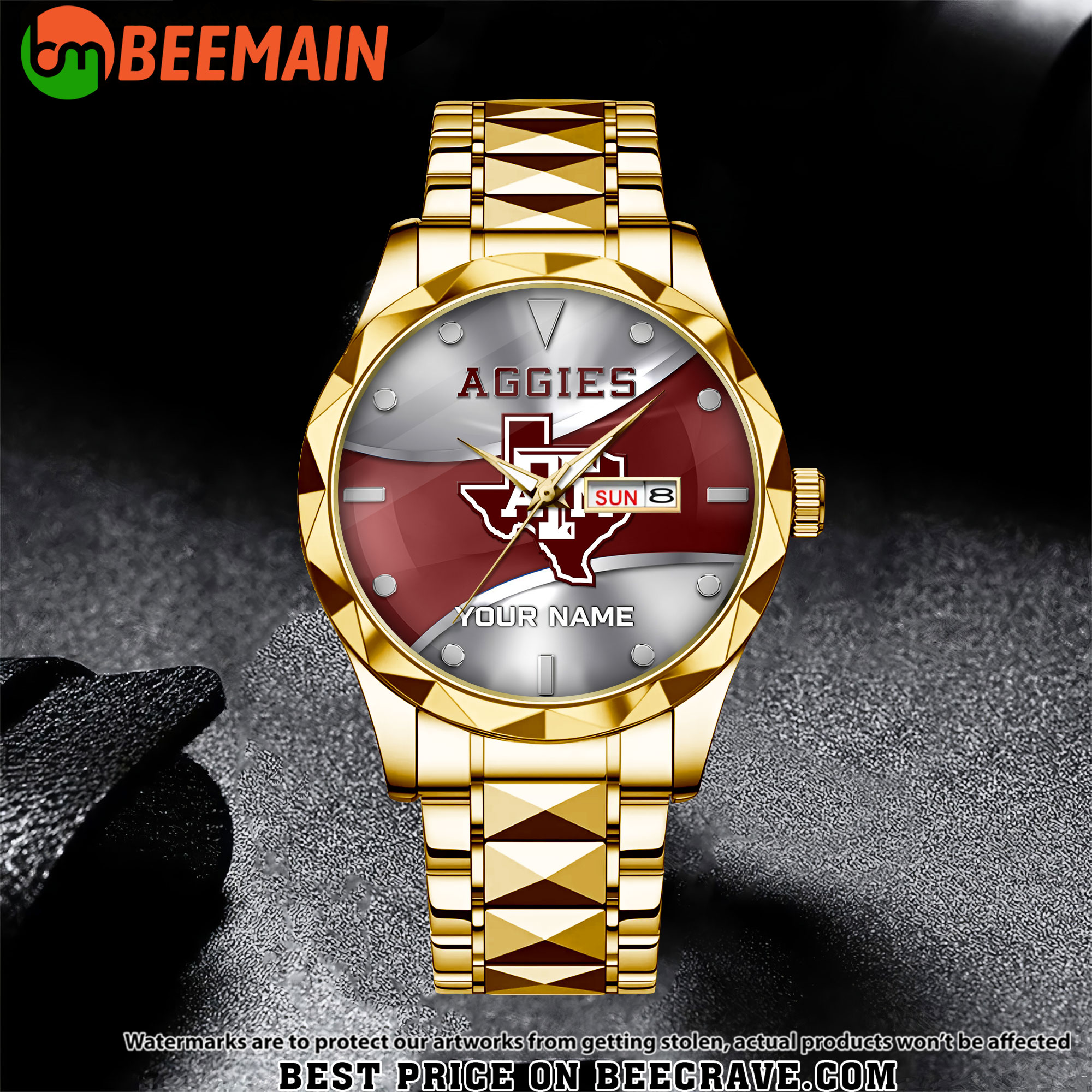 ZNCAA Texas A_M Aggies – Alloy Men Quartz Watch – Custom Name