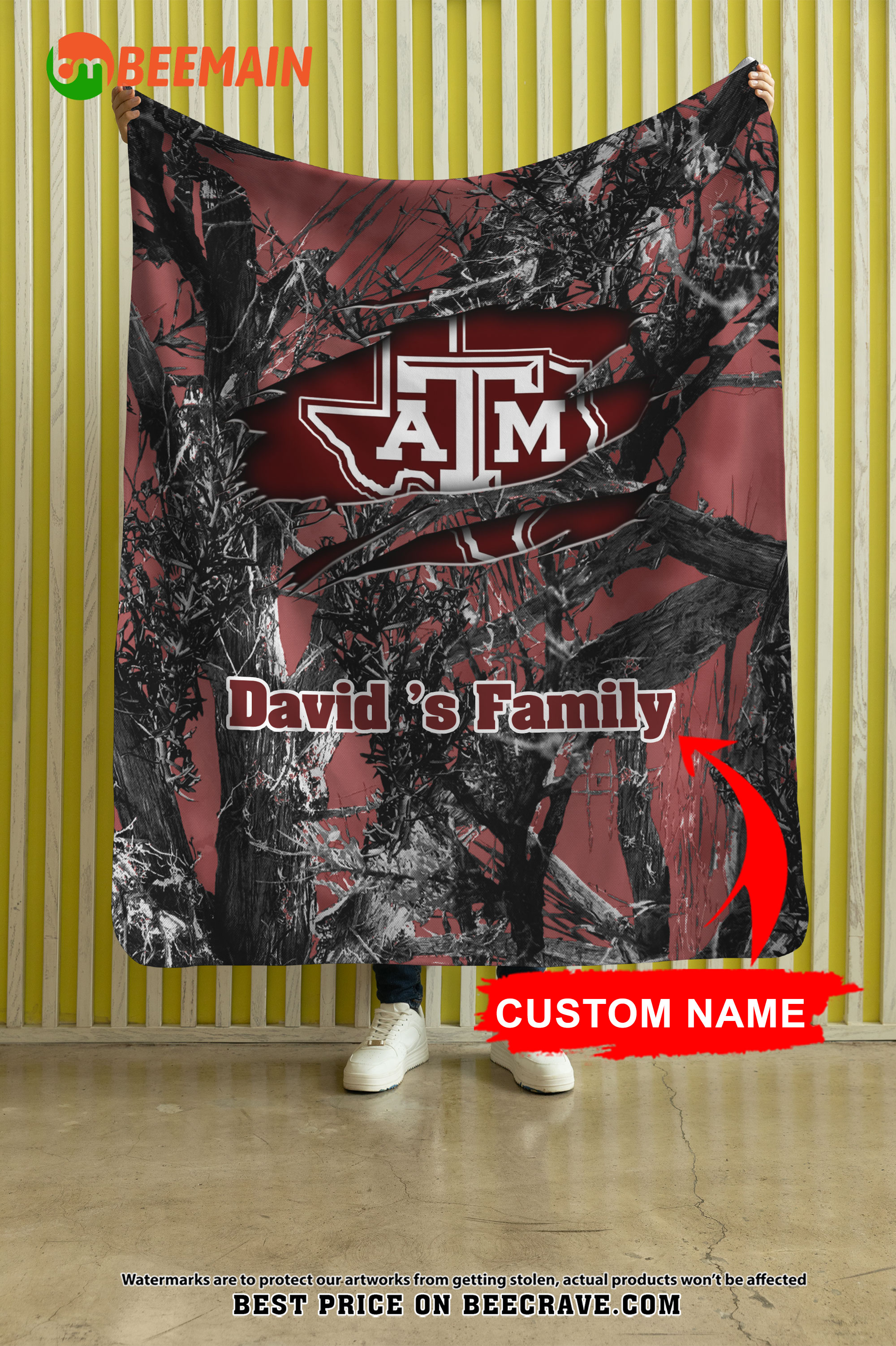 ZNCAA Texas A&M Aggies – Football Camo Blanket – Custom Name