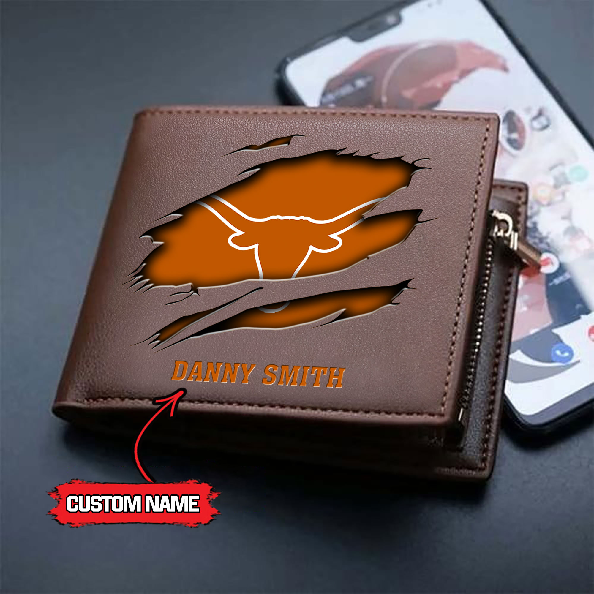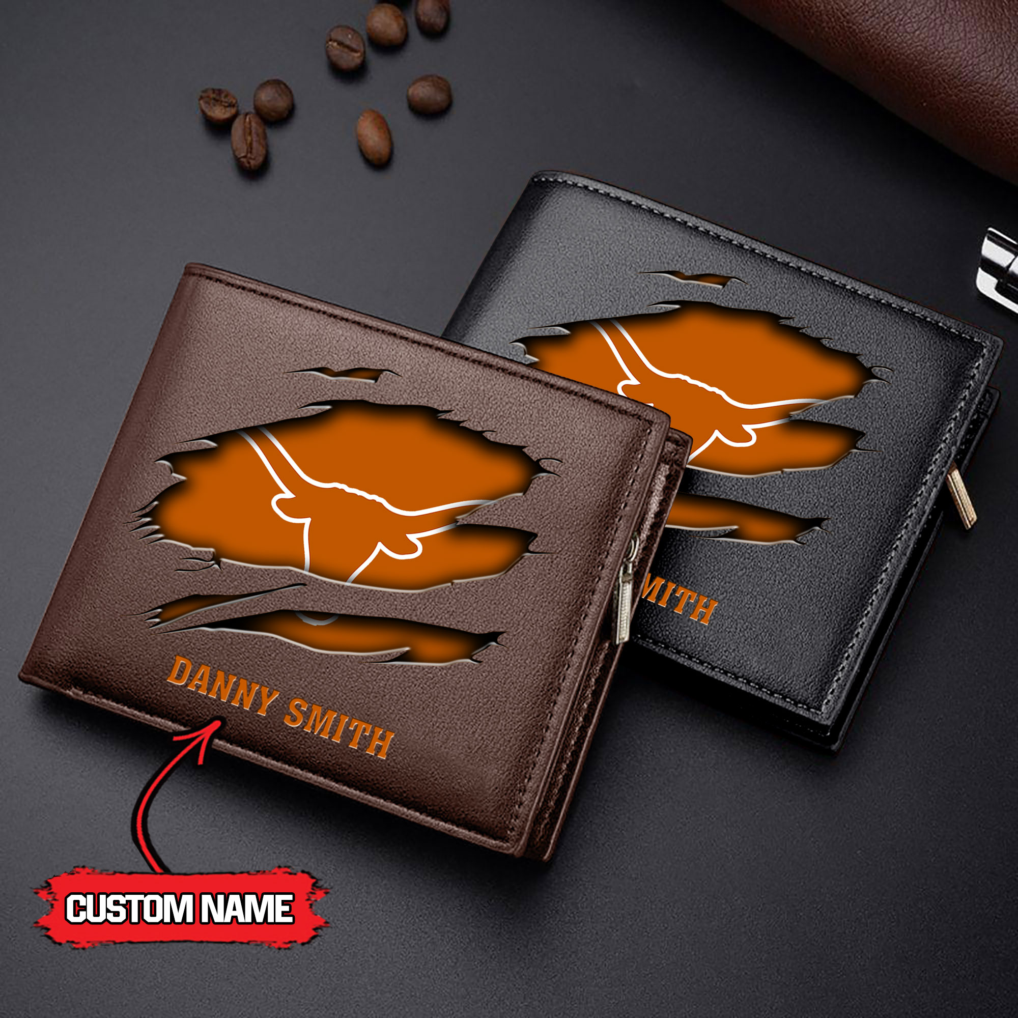 ZNCAA Texas Longhorns – Men’s Leather Wallet – Custom Name