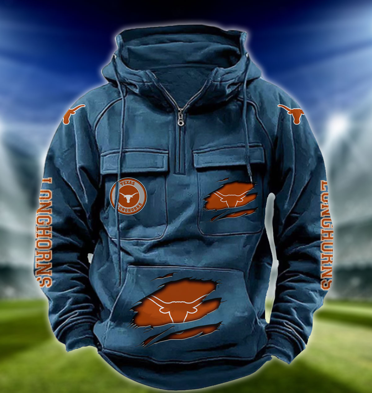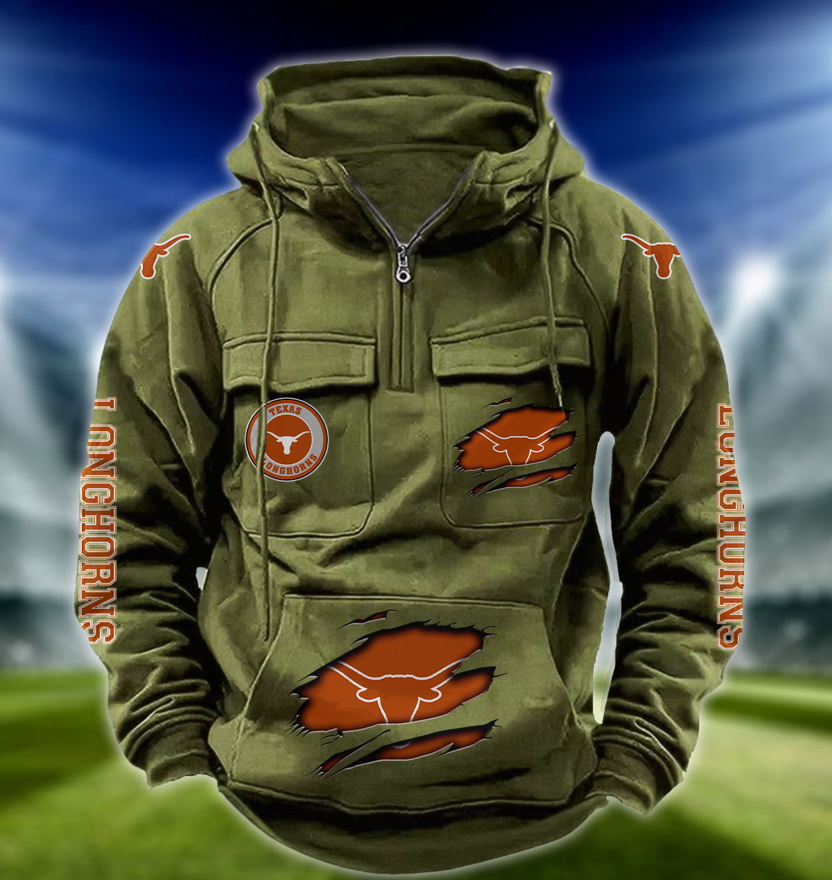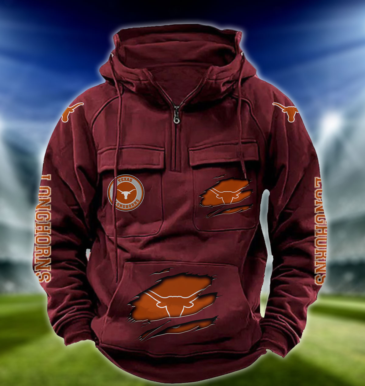 ZNCAA Texas Longhorns – Football Men’s Zip-Up Hoodie – Custom Name