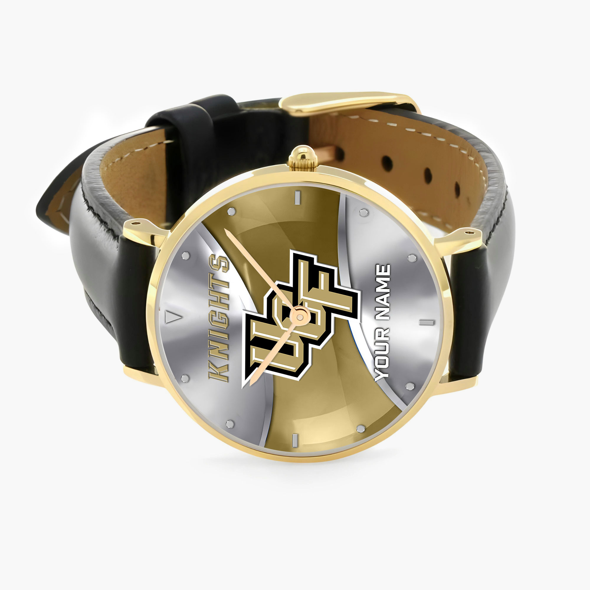 ZNCAA UCF Knights – Football Black Stitched Leather Watch – Custom Name