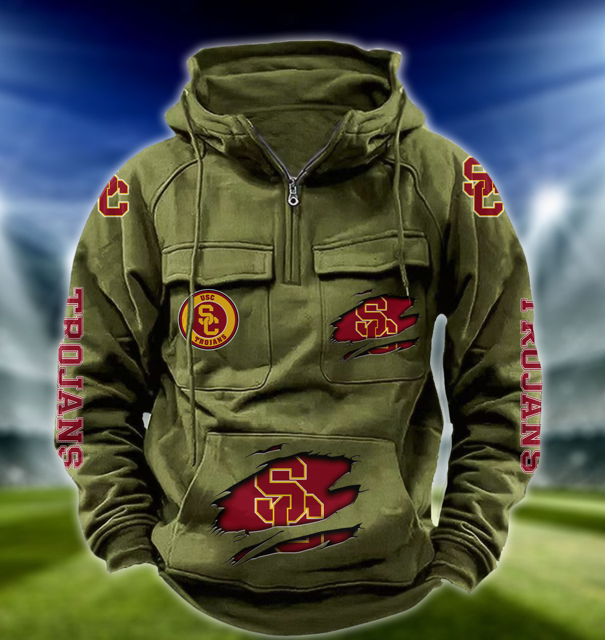 ZNCAA USC Trojans – Football Men’s Zip-Up Hoodie – Custom Name