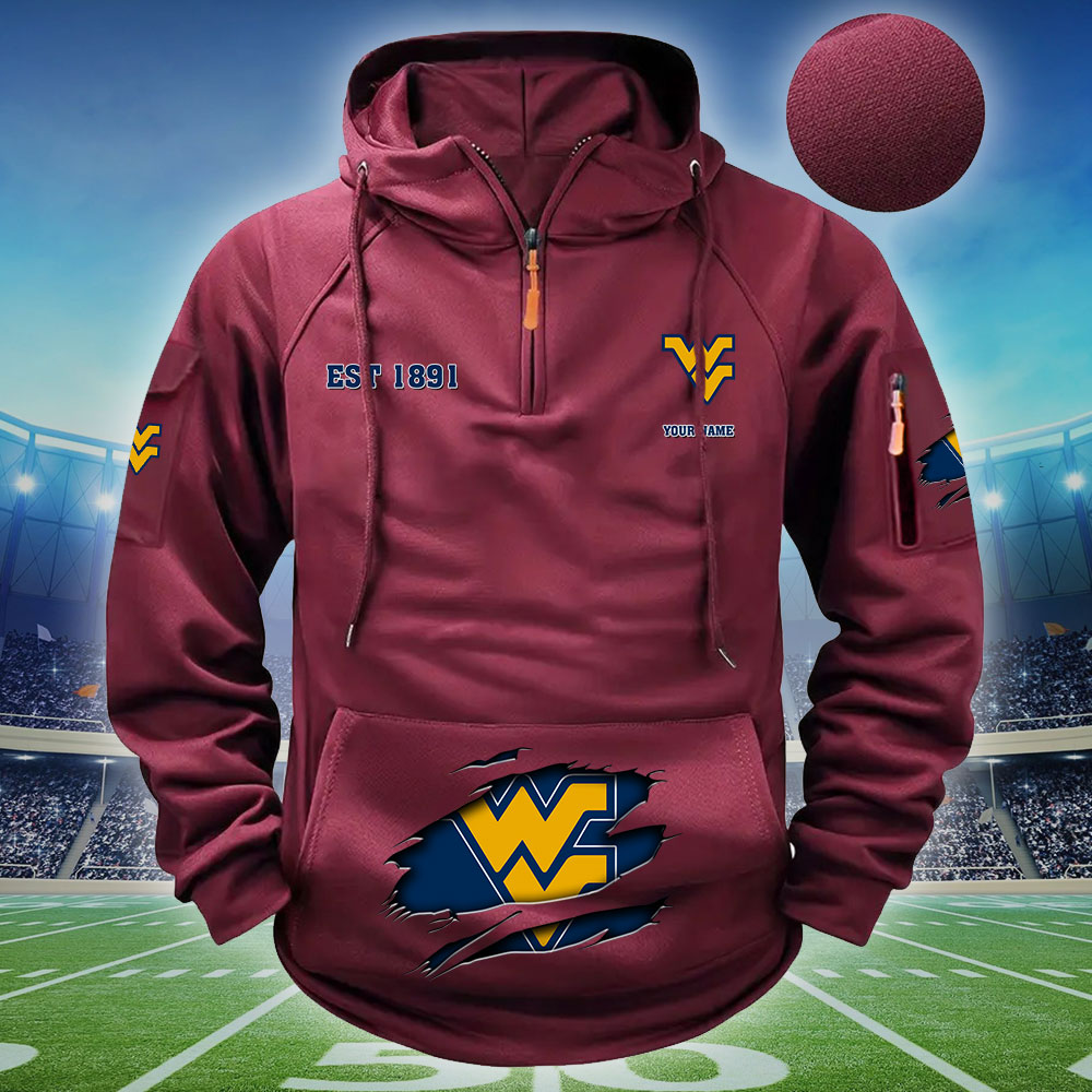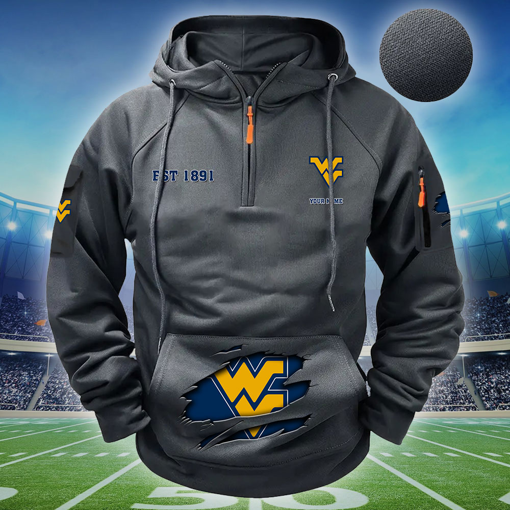 ZNCAA West Virginia Mountaineers – Football Men’s Zip-Up Hoodie – Custom Name