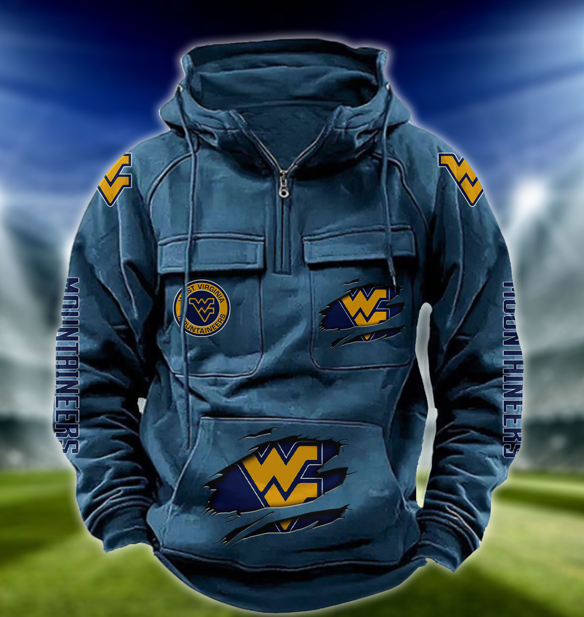 ZNCAA West Virginia Mountaineers – Football Men’s Zip-Up Hoodie – Custom Name