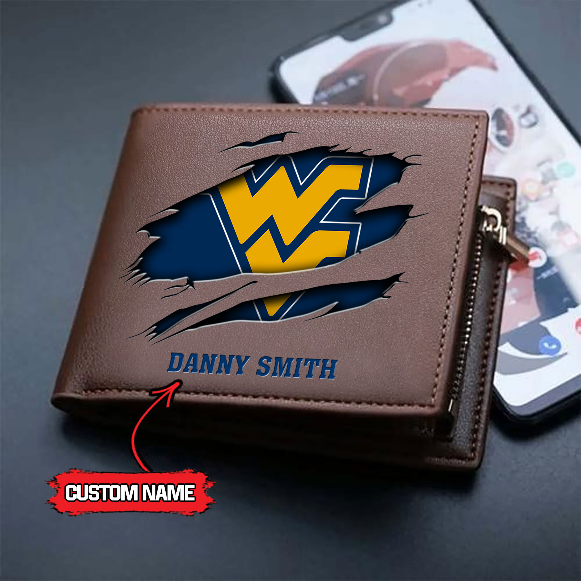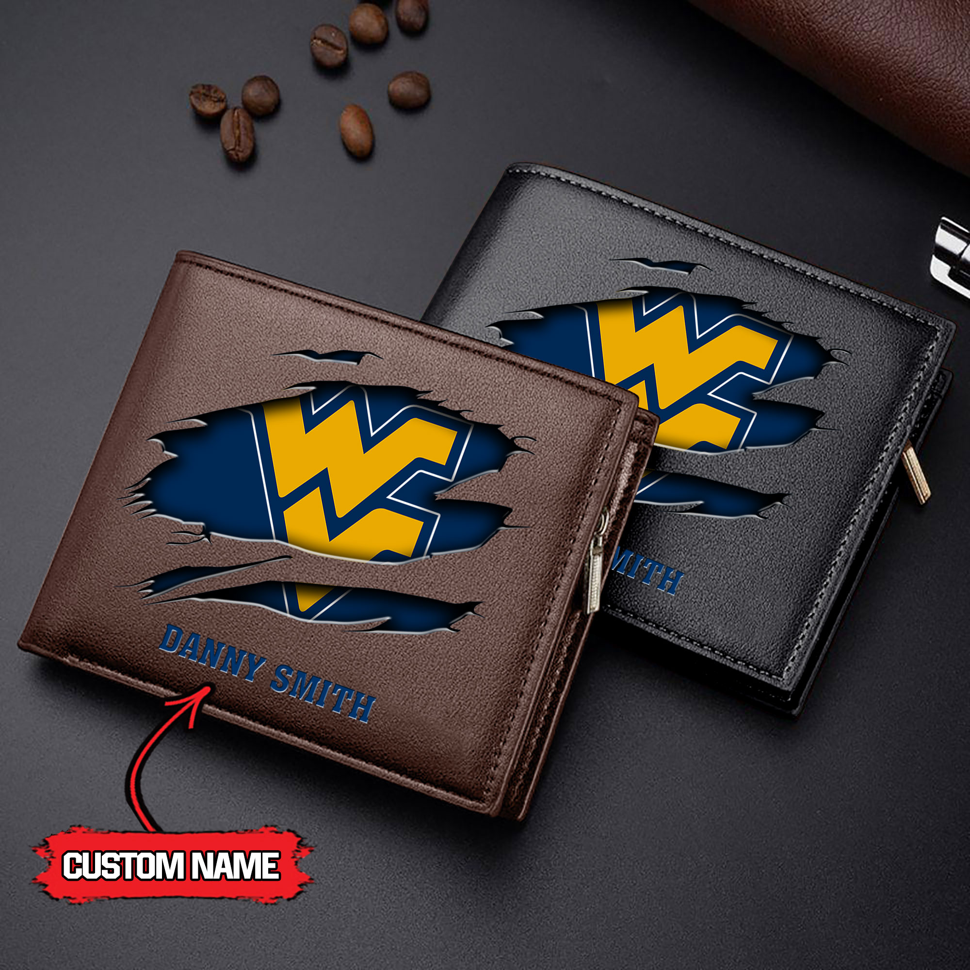 ZNCAA West Virginia Mountaineers – Men’s Leather Wallet – Custom Name