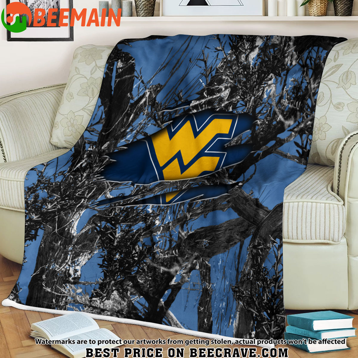 ZNCAA West Virginia Mountaineers – Football Camo Fleece Blanket