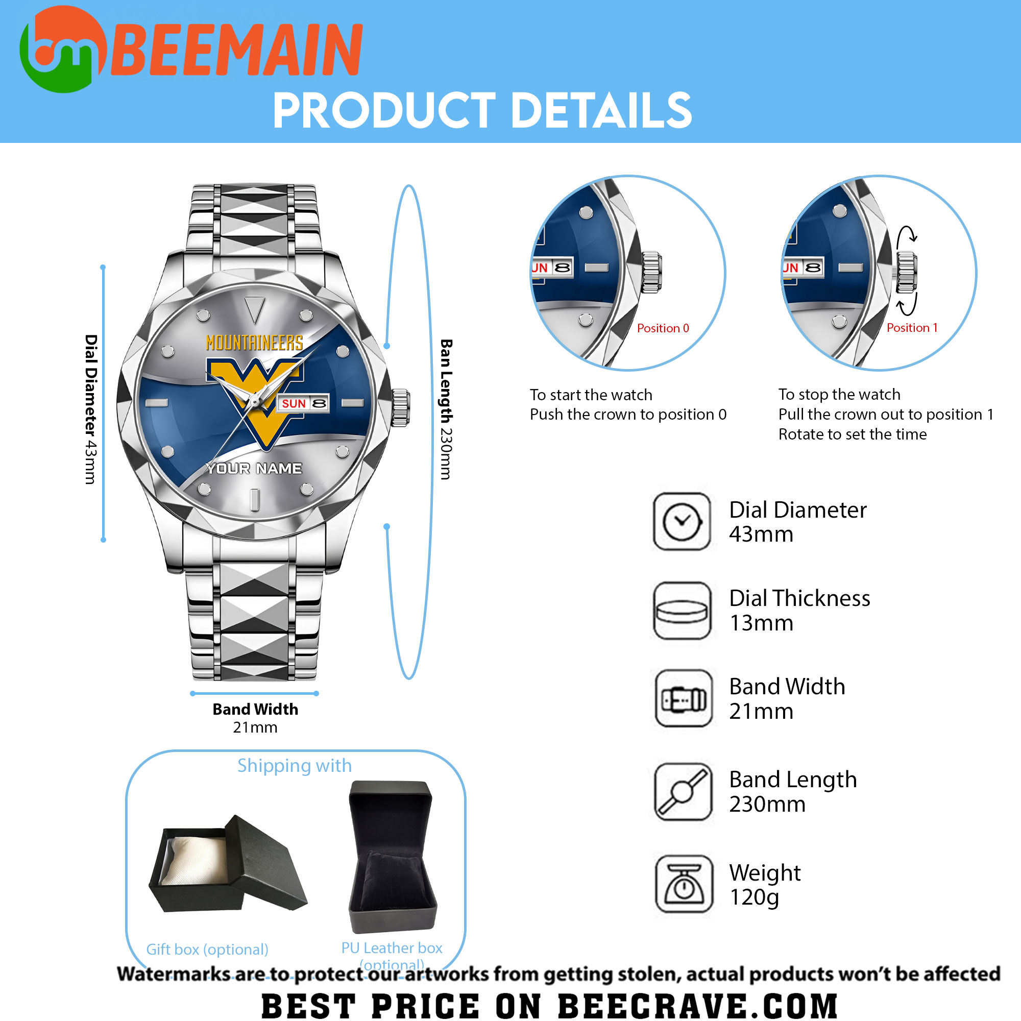 NCAA West Virginia Mountaineers – Football Alloy Luxury Quartz Watch – Custom Name