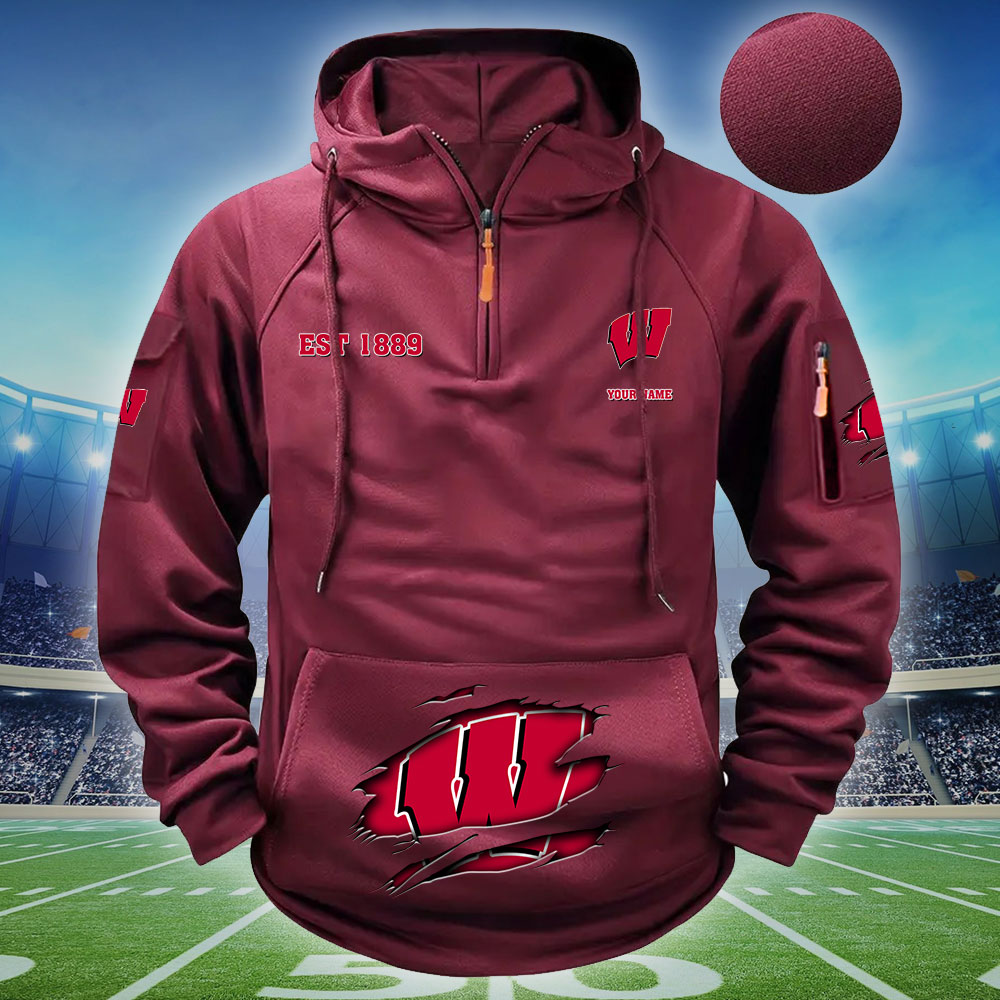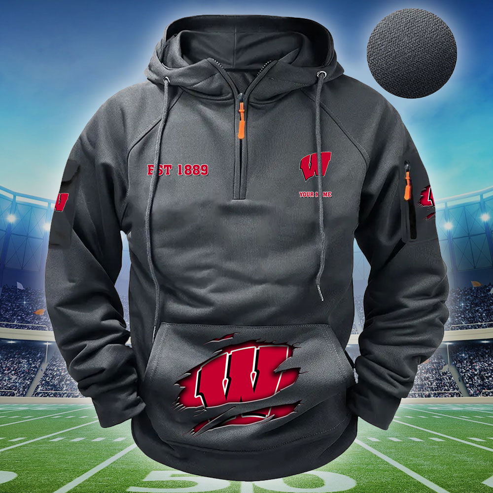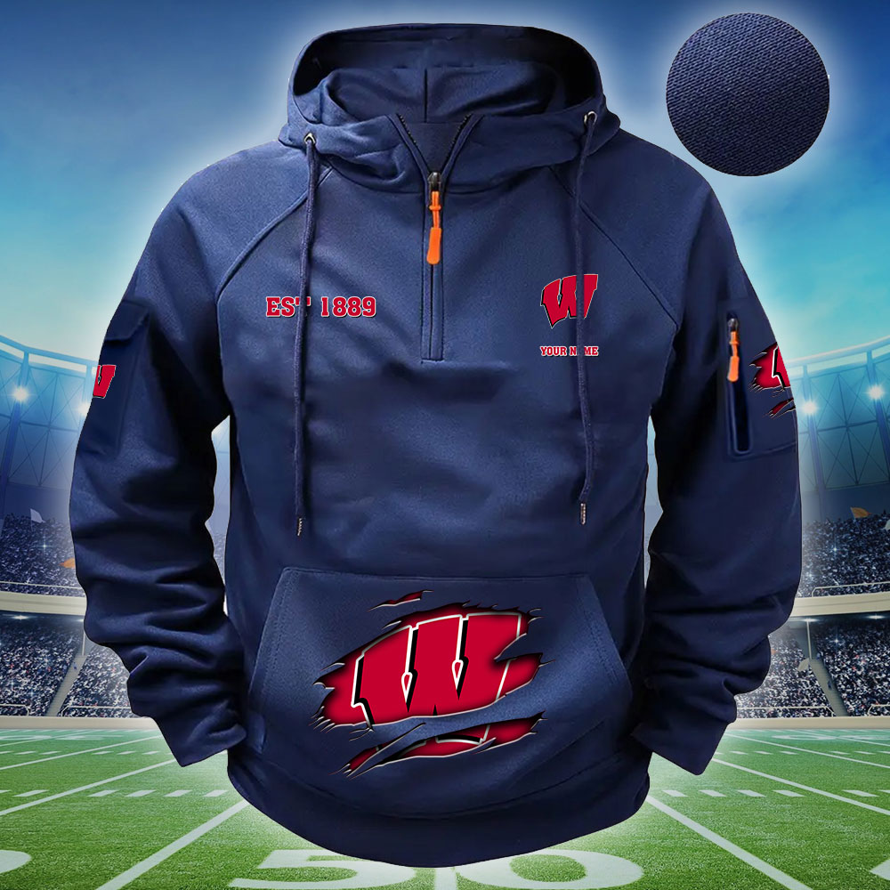 ZNCAA Wisconsin Badgers – Football Men’s Zip-Up Hoodie – Custom Name