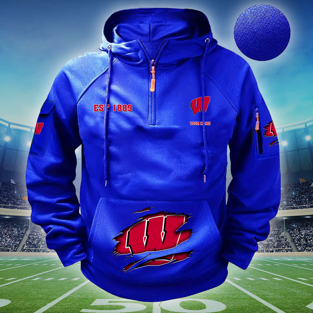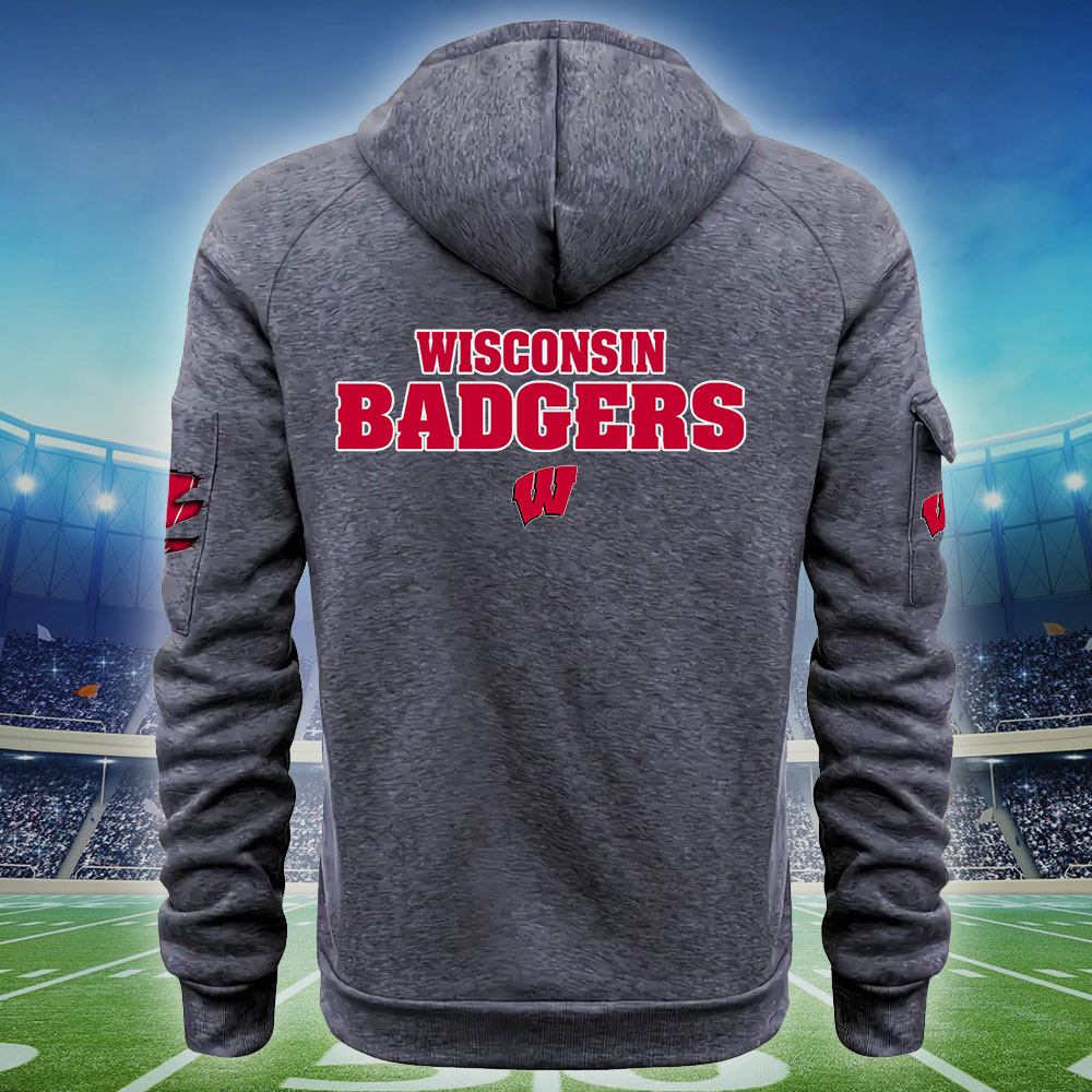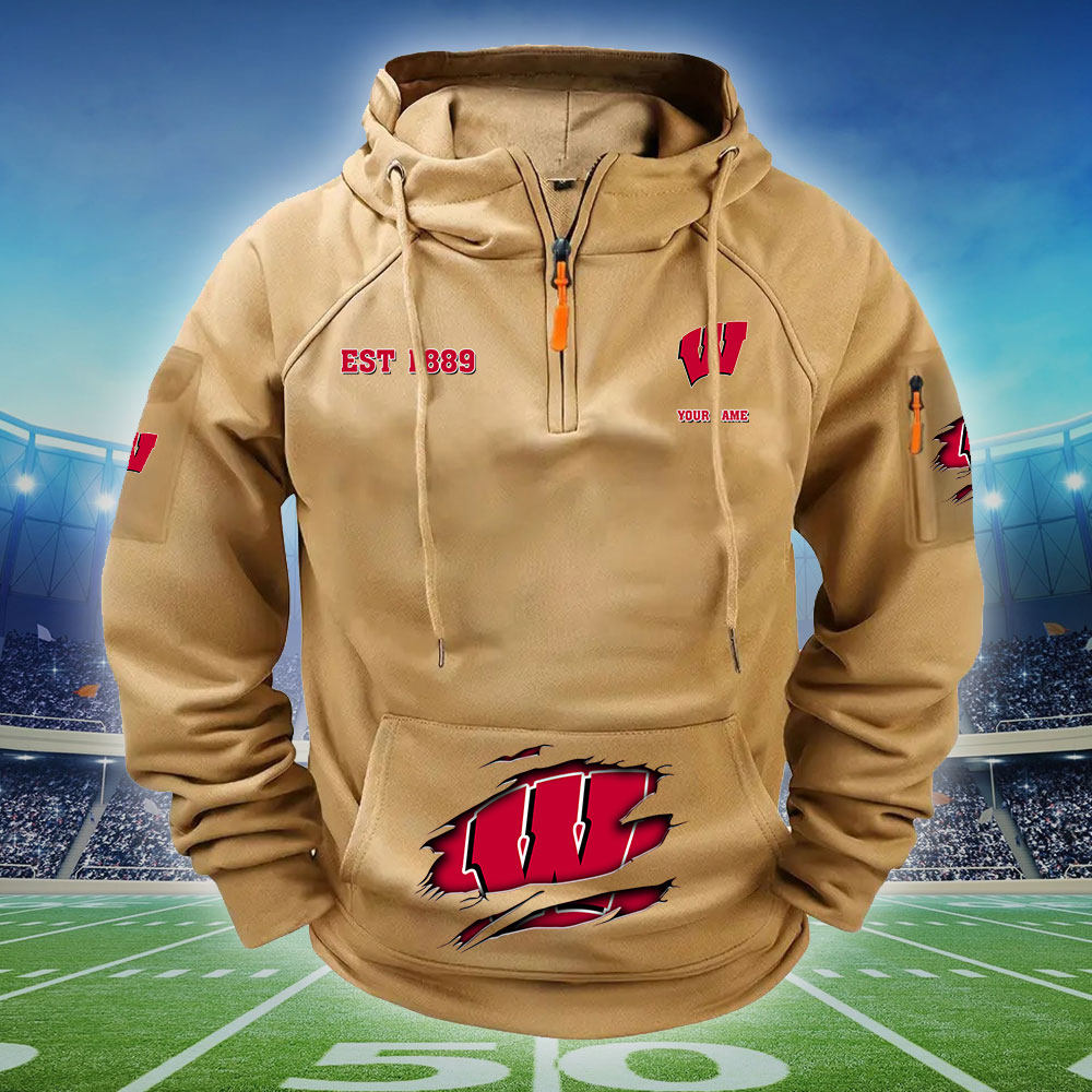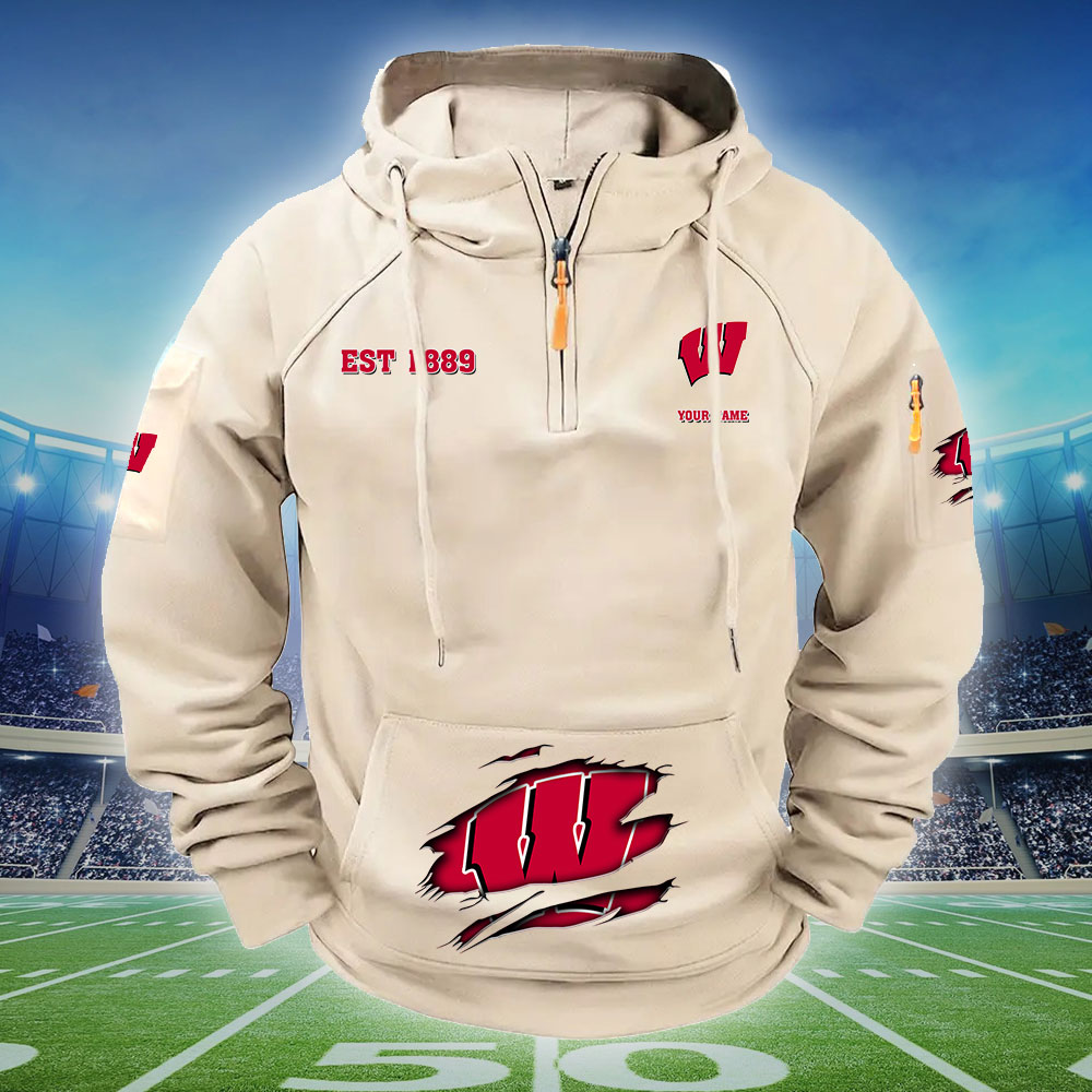 ZNCAA Wisconsin Badgers – Football Men’s Zip-Up Hoodie – Custom Name